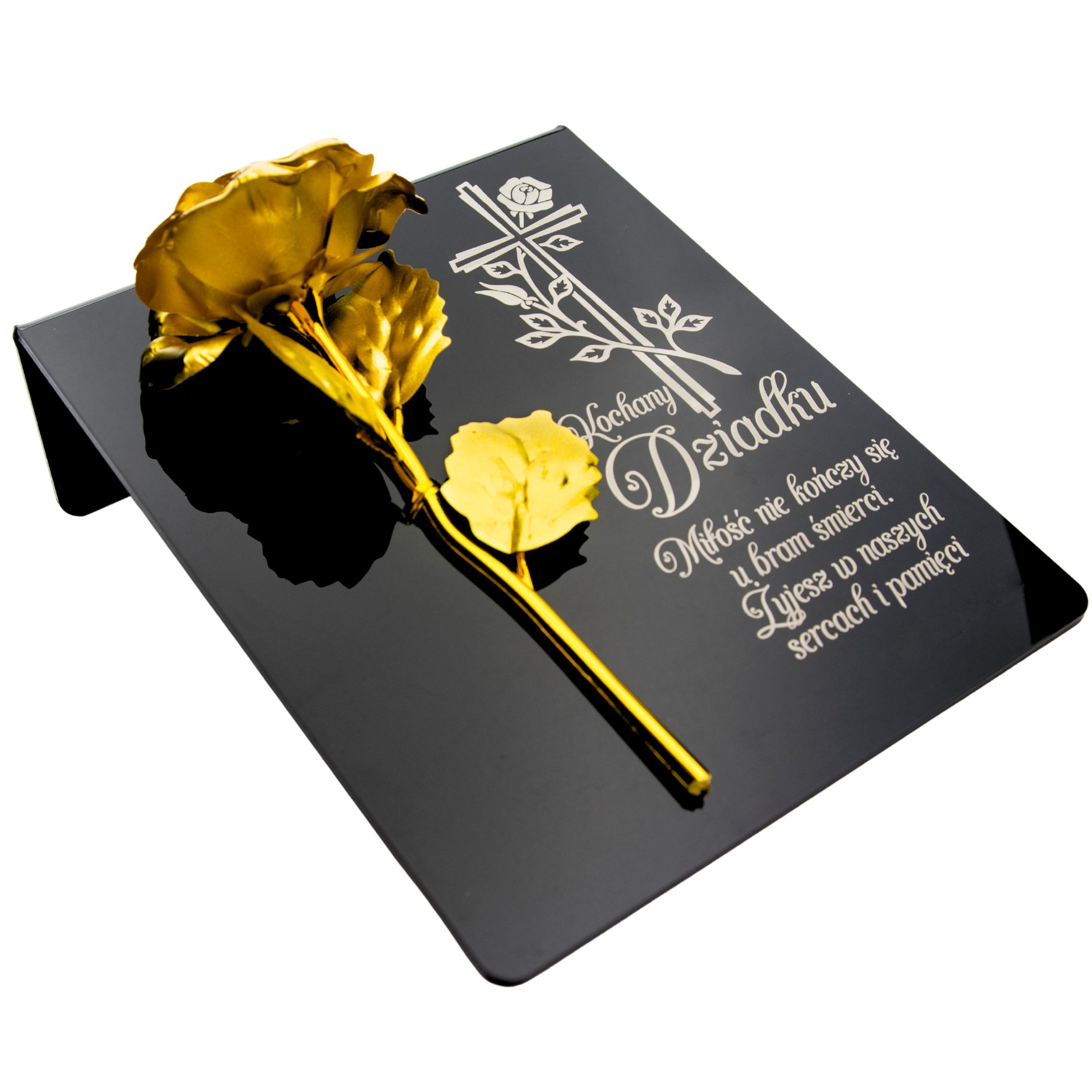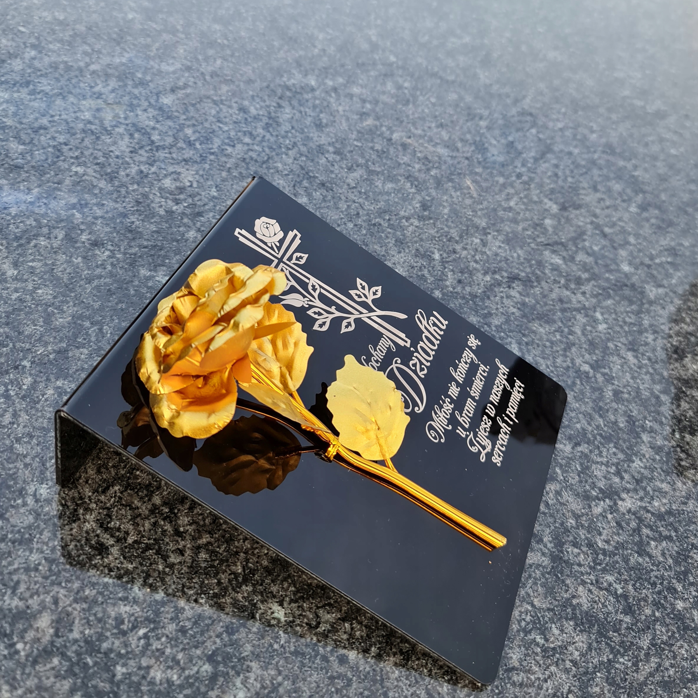 DEKORACJA na grób GRAWEROWANY ZNICZ podstawka na cmentarz RÓŻA DLA DZIADKA