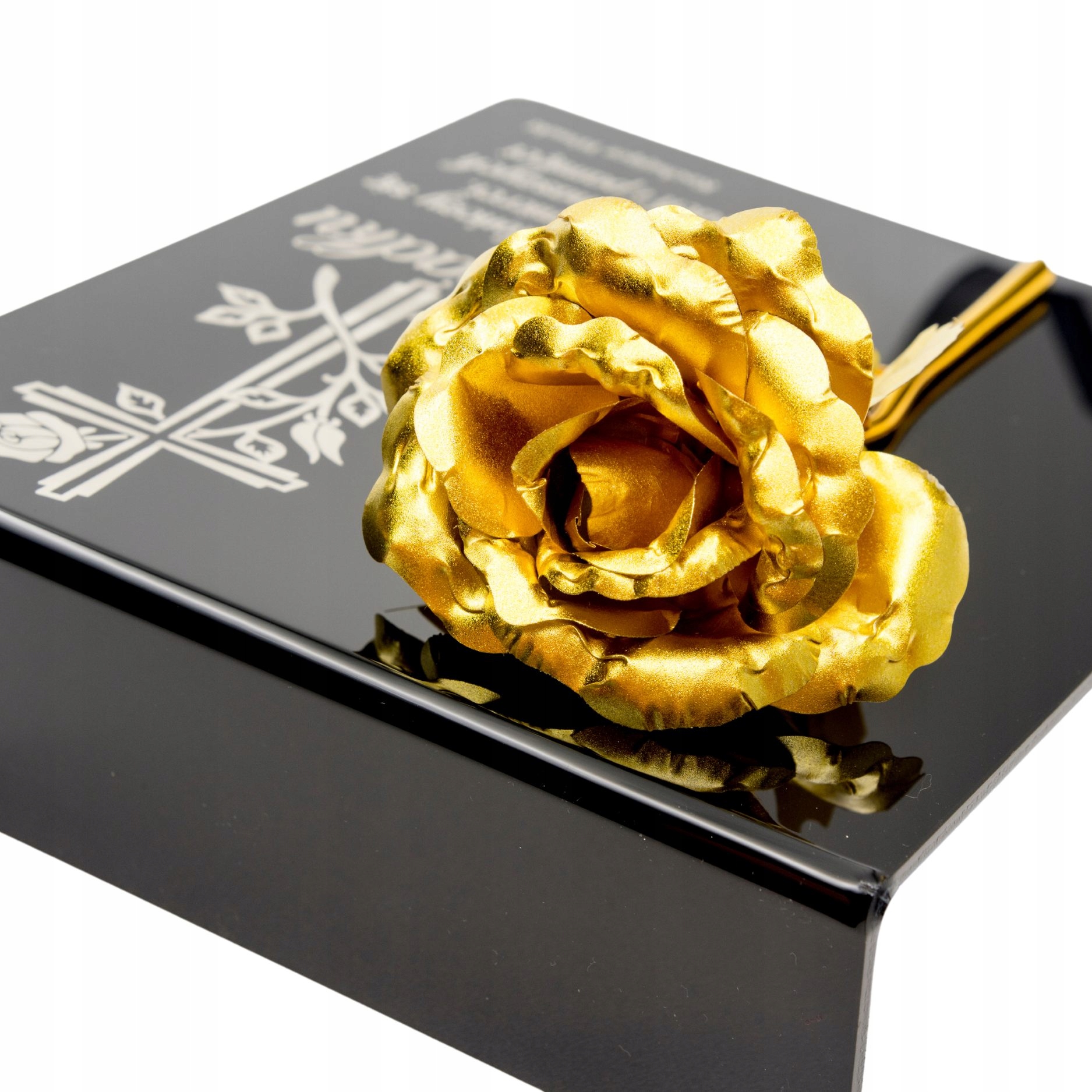 Постамент виготовлений з акрилового скла, прикрашений металевою вічною трояндою.