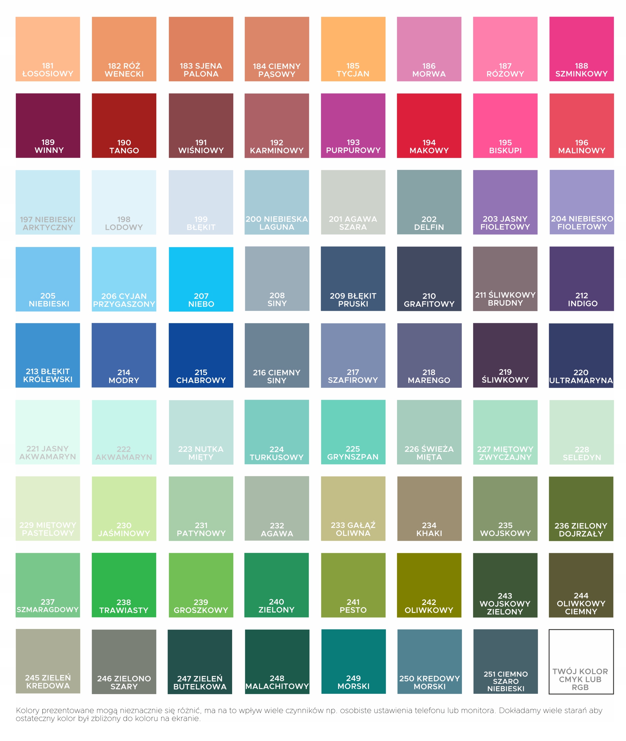 Завдяки широкому діапазону кольорів ви можете відрегулювати огорожі практично будь -якого інтер'єру. Якщо ви не знайшли правильного кольору наклейки Lamperia у нашій кольоровій палітрі, ви можете написати нам повідомлення, то ми зробимо прикрасу відповідно до ваших вказівок.