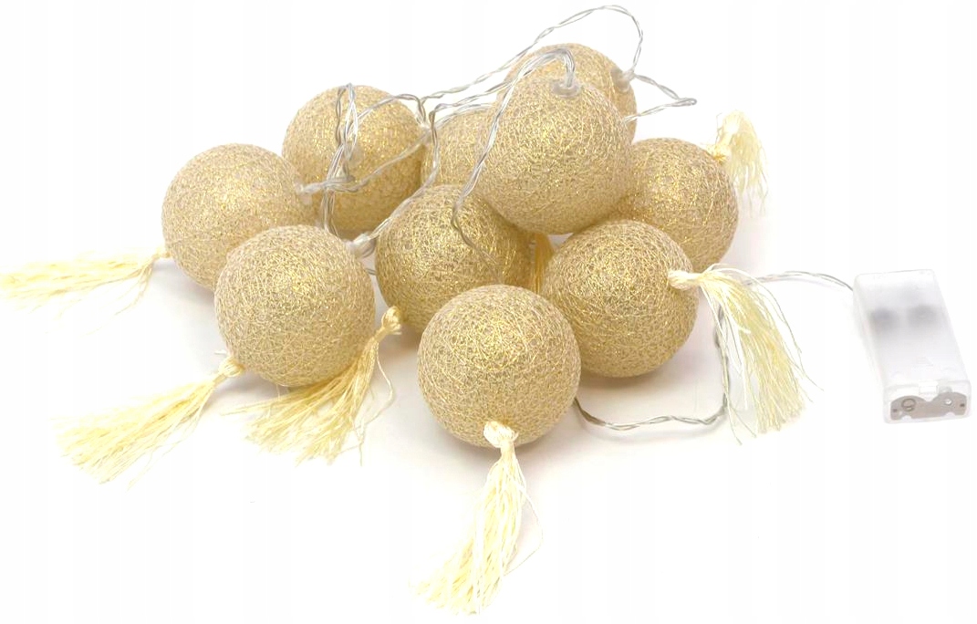 Лампи Cotton Balls, ланцюжок з 10 світлодіодних кульок, батарейки 6 см