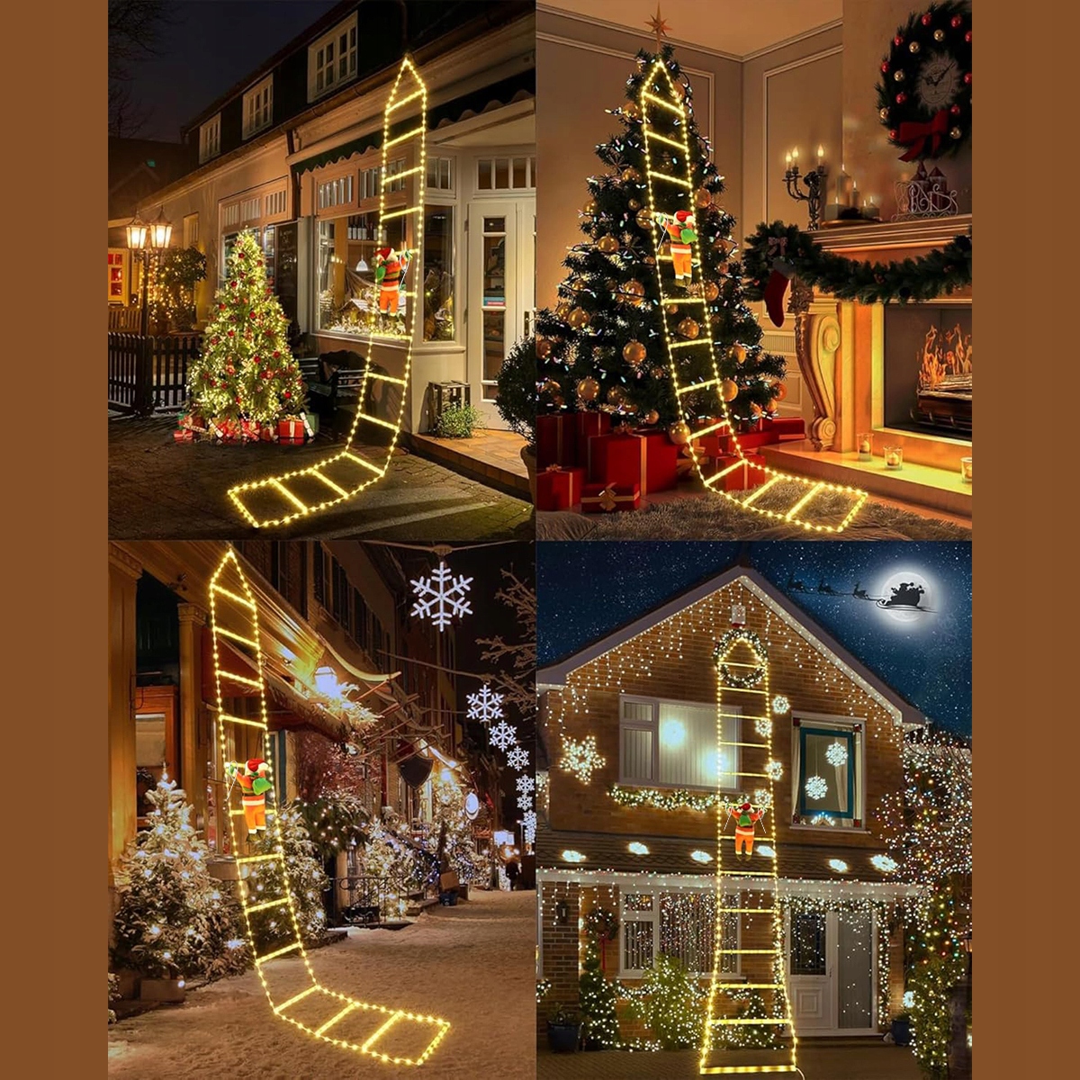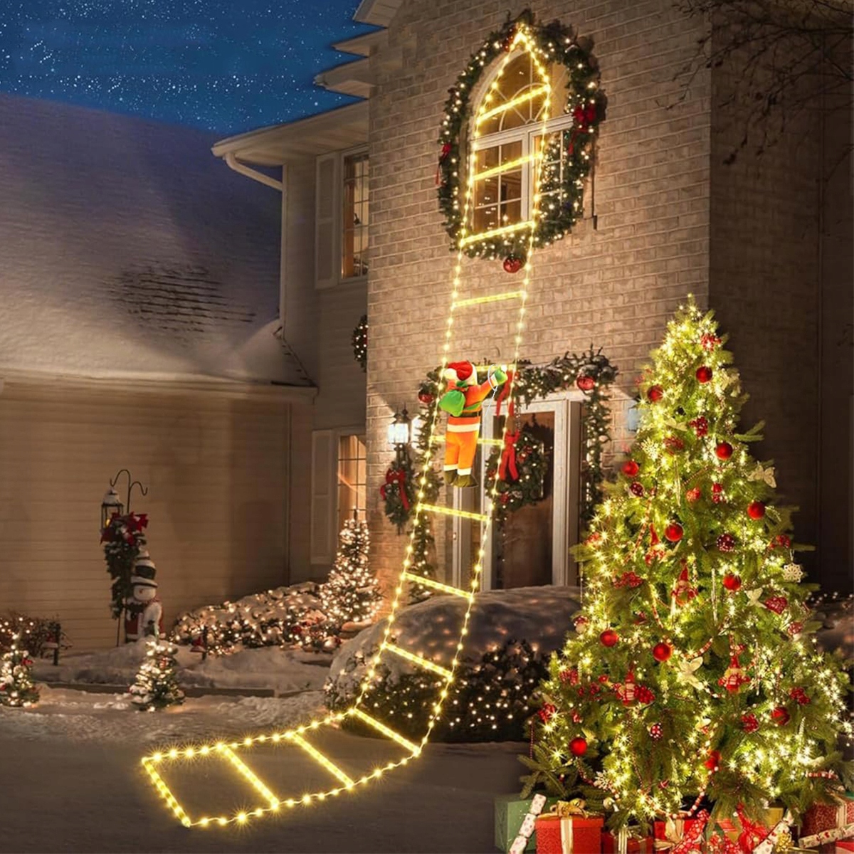 Санта-Клаус оснащено застібками-блискавками, тож його можна знімати та розміщувати в різних місцях на драбині для досягнення різних візуальних ефектів.