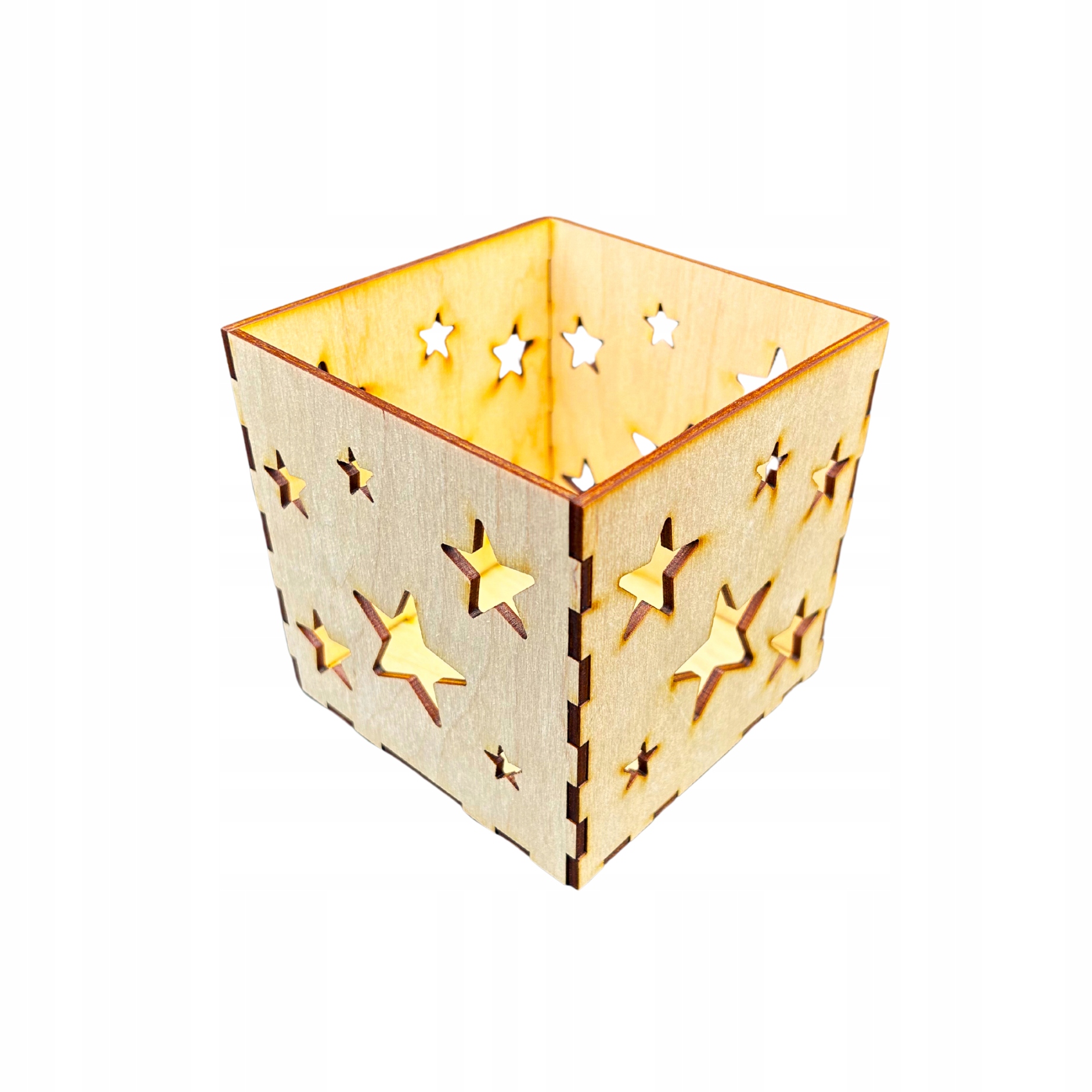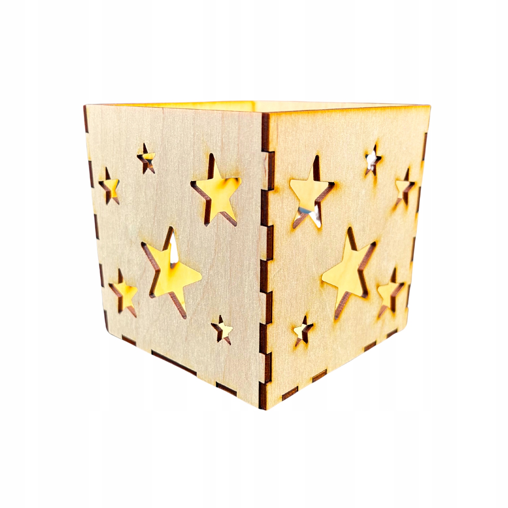 LAMPION DREWNIANY LATARENKA ZE SKLEJKI DECOUPAGE OZDOBA ŚWIECZNIK 11CM