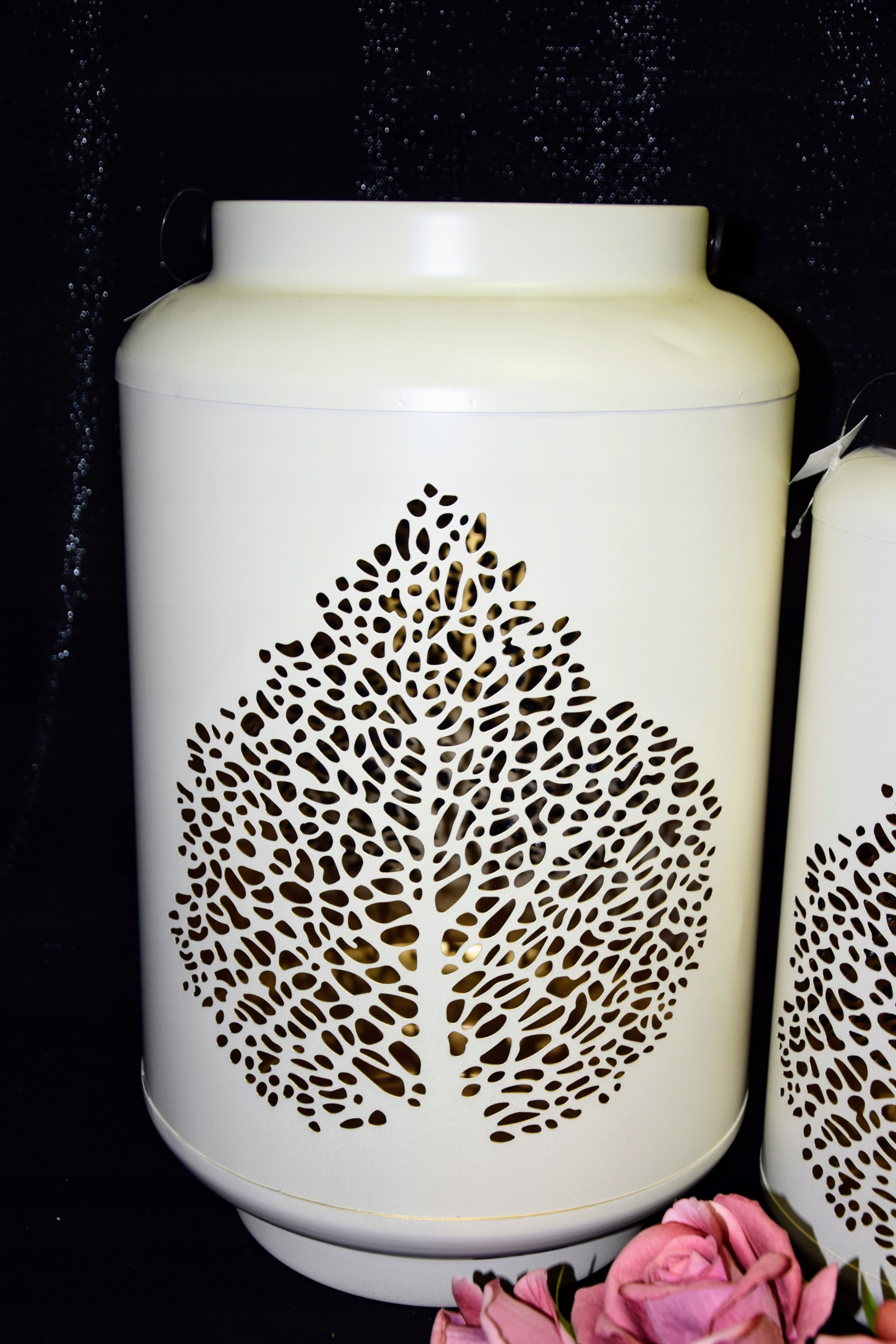 Ажурний ліхтарик БІЛОГО кольору, прикрашений мотивом ажурного листя.