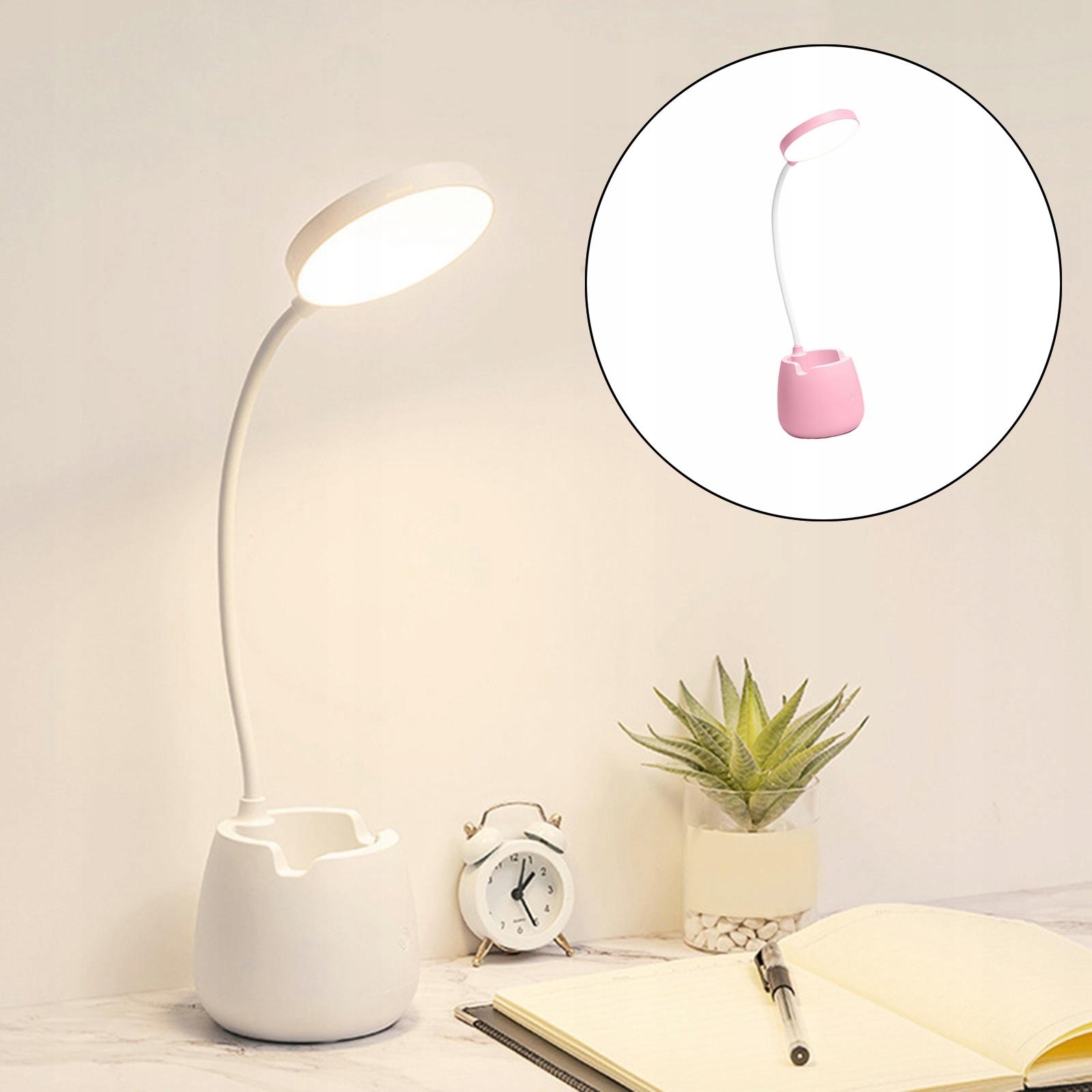 Lampka na biurko LED z uchwytem na długopis. Regulowana temperatura barwowa 3 w 1, różowa