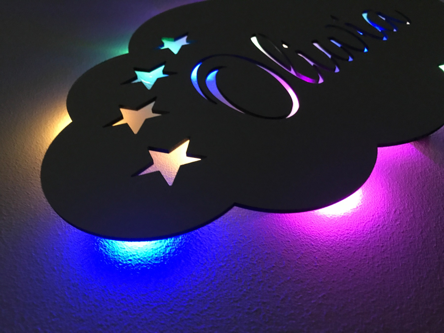Красивий світлодіодний нічник З ІМЕНЕМ ДИТИНИ у формі хмари з невеликими зірки.