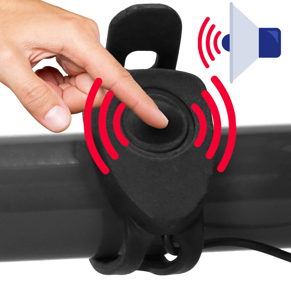 У комплекті з підсвічуванням ви також отримуєте цей маленький гаджет, який ви неодмінно оціните - звукову сигналізацію, підключену до передньої підсвітки, яку ви можете приєднати до керма та використовуйте як гудок/дзвінок. Він видає дуже гучний і пронизливий високочастотний звук, тому рекомендуємо спробувати його перед першим використанням.