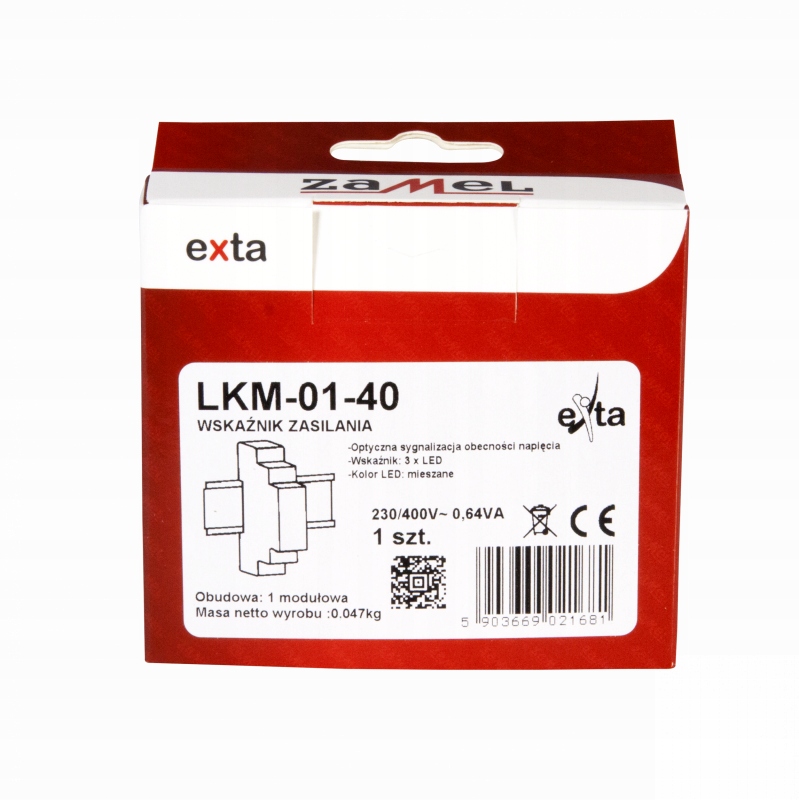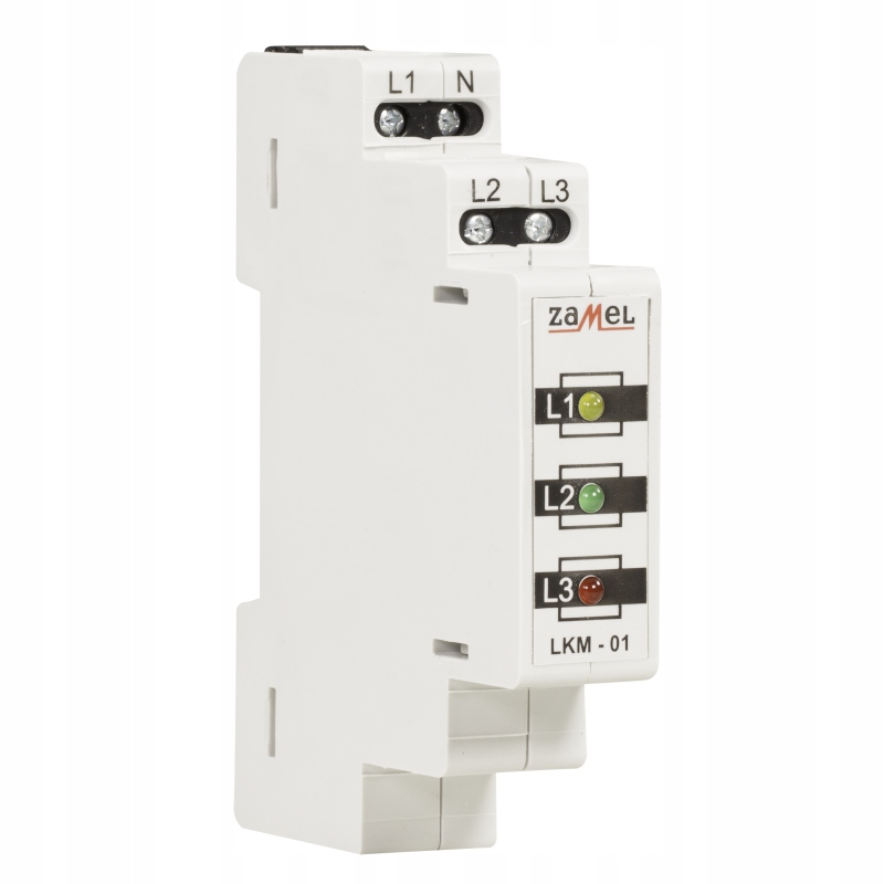 Індикатор живлення ЛКМ-01 використовується для індикації напруги в трифазній мережі. Сигналізація здійснюється за допомогою трьох світлодіодів з маркуванням L1, L2, L3. Доступні чотири кольорові версії світлодіодів (червоний, зелений, жовтий, змішаний). Індикатор живлення ЛКМ-01 можна використовувати в трифазній мережі TN. (з нейтральним N).