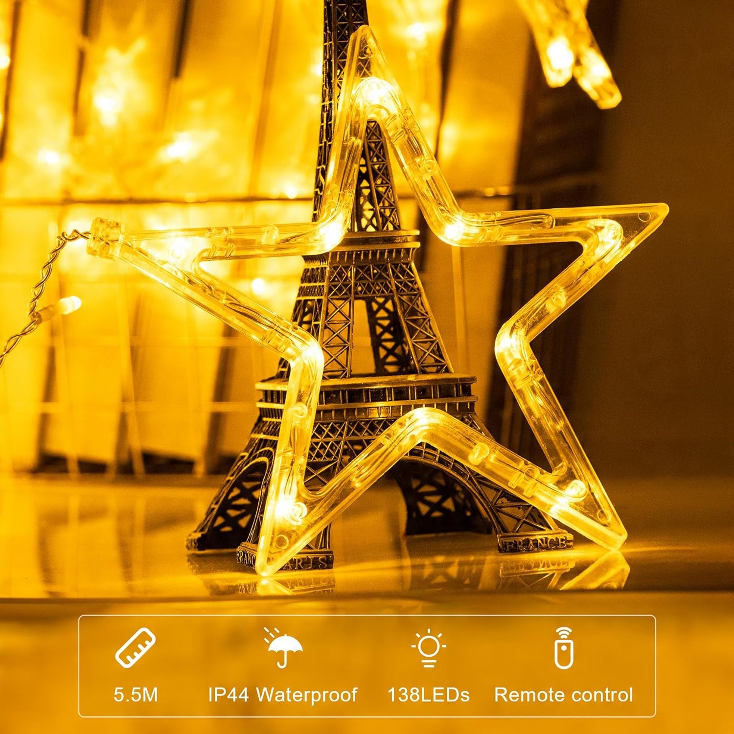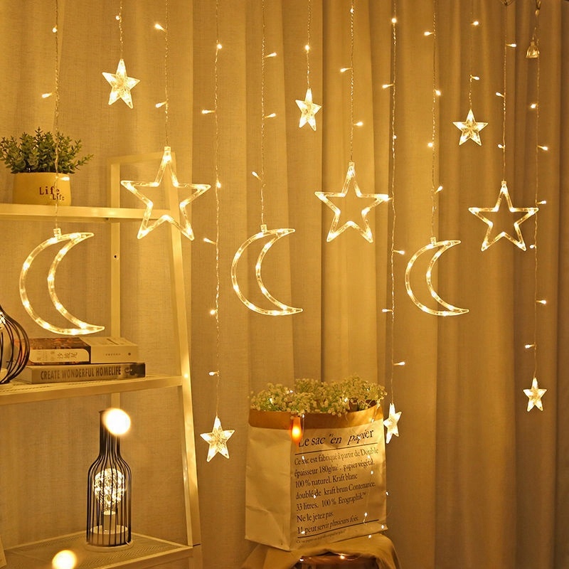 Lampki wiszące girlanda świetlna kurtyna GWIAZKI KSIĘŻYC na PILOTA 8 TRYBÓW