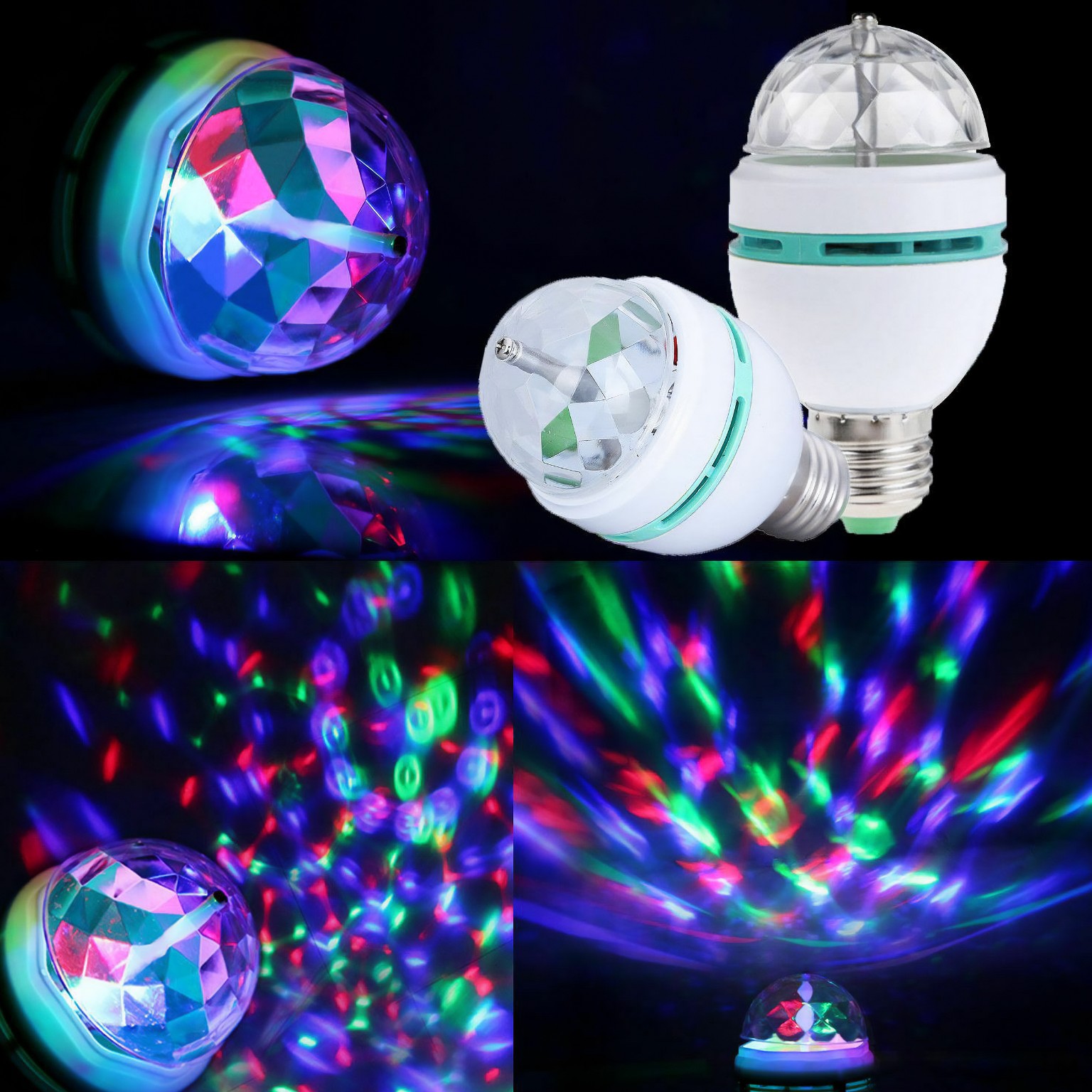 ЛАМПОЧКА Е27 ПОТУЖНА СВІТЛОДІОДНА ДИСКО КУЛЯ ОБЕРТОВА
