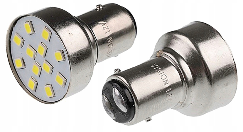 лампочка P21/5W Bay15d 12V 12x 5 мм світлодіод білий 2 шт. Колір білого світла (6000K). Напруга - 12В. Споживання електроенергії: 0,36 Вт. Упаковка містить 2 шт.