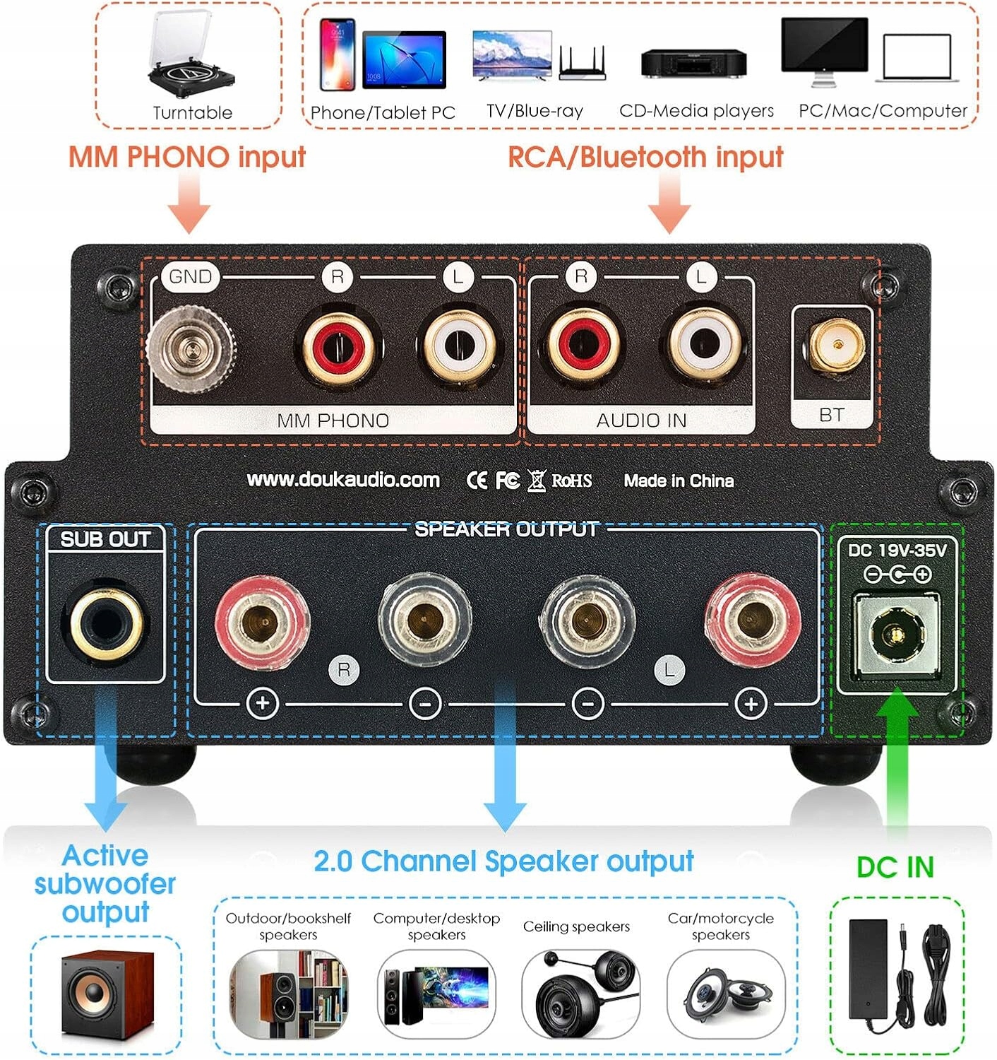 - ✅Гібридний підсилювач – лампова схема забезпечує музичний звук, а система TDA7498E забезпечує потужність 160 Вт + 160 Вт, здатну керувати пасивними динаміками (4 Ом)