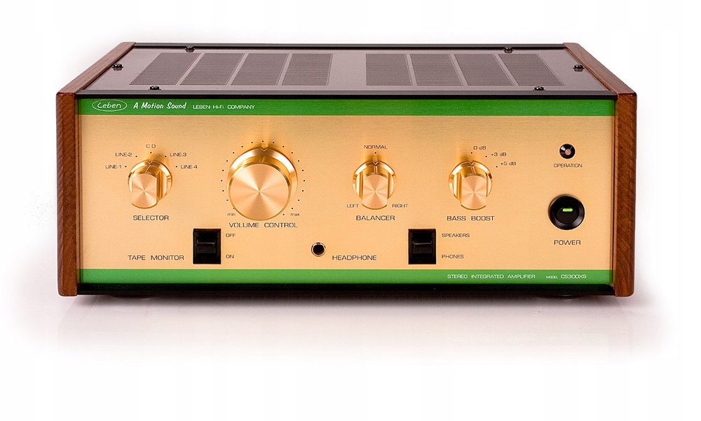 CS-300XS – це інтегрований ламповий підсилювач. Його зовнішній вигляд майже не відрізняється від попередніх версій, як і комплектація. Однак у новому підсилювачі використовуються зовсім інші вихідні лампи і, отже, абсолютно нова схема. Він оснащений кращими доступними лампами EL-84 російського виробництва фірми Совтек, відомої своїм чудовим звуком і високою надійністю. В системі управління використовуються фантастичні подвійні тріоди NOS GENERAL ELECTRIC 5751 (одна з кращих версій лампи 12AX7A). Поточний етап працює за системою push-pull. Інтер'єр в повному порядку, незважаючи на те, що вся збірка виконана без використання плитки, точковим методом. Незважаючи на те, що підсилювач є найдешевшим у пропозиції Leben, він отримав багато нагород і відзнак у всьому світі.