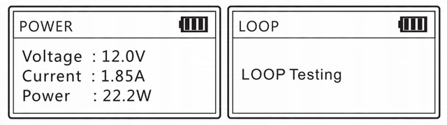 тестування По. Тестер перевіряє стандарт джерела живлення POE, дає номер лінії, на якому наведені напруга та його значення. Після підключення пристрою, що живиться, тестер дає значення струму та споживаної потужності.