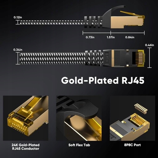 Плоска конструкція cat 8 уникає плутанини проводів, дозволяє заощадити простір та акуратну та безпечну установку.