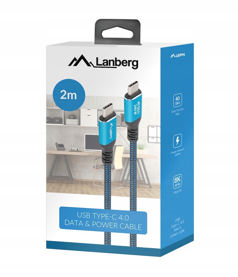 Lanberg USB-C USB4 PD 3.0 240W 8K 60 Гц 40 ГБ/с чашку Cu 2m
