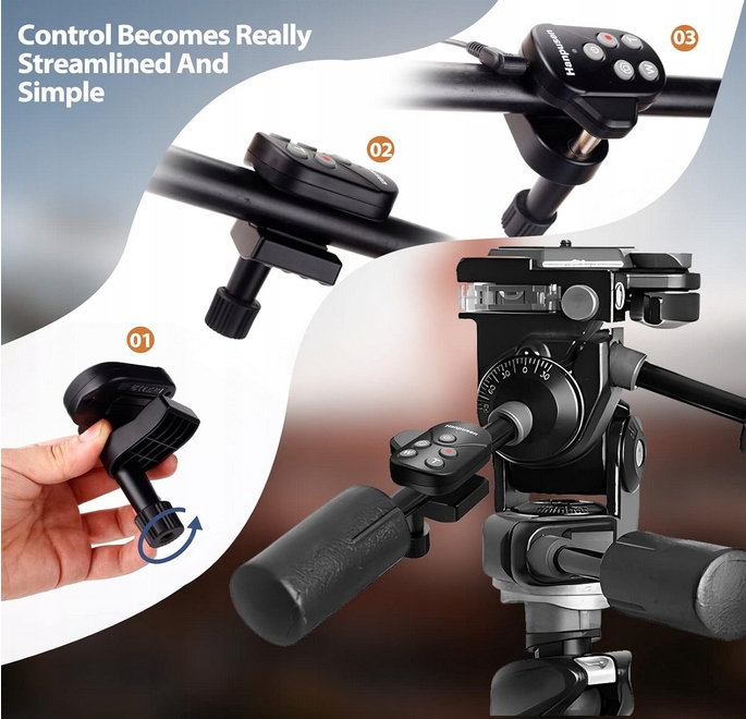 - Просте й міцне встановлення: контролер масштабування постачається із затискачем і ручкою для кріплення до кріплення штатива для зручного використання, коли зйомка