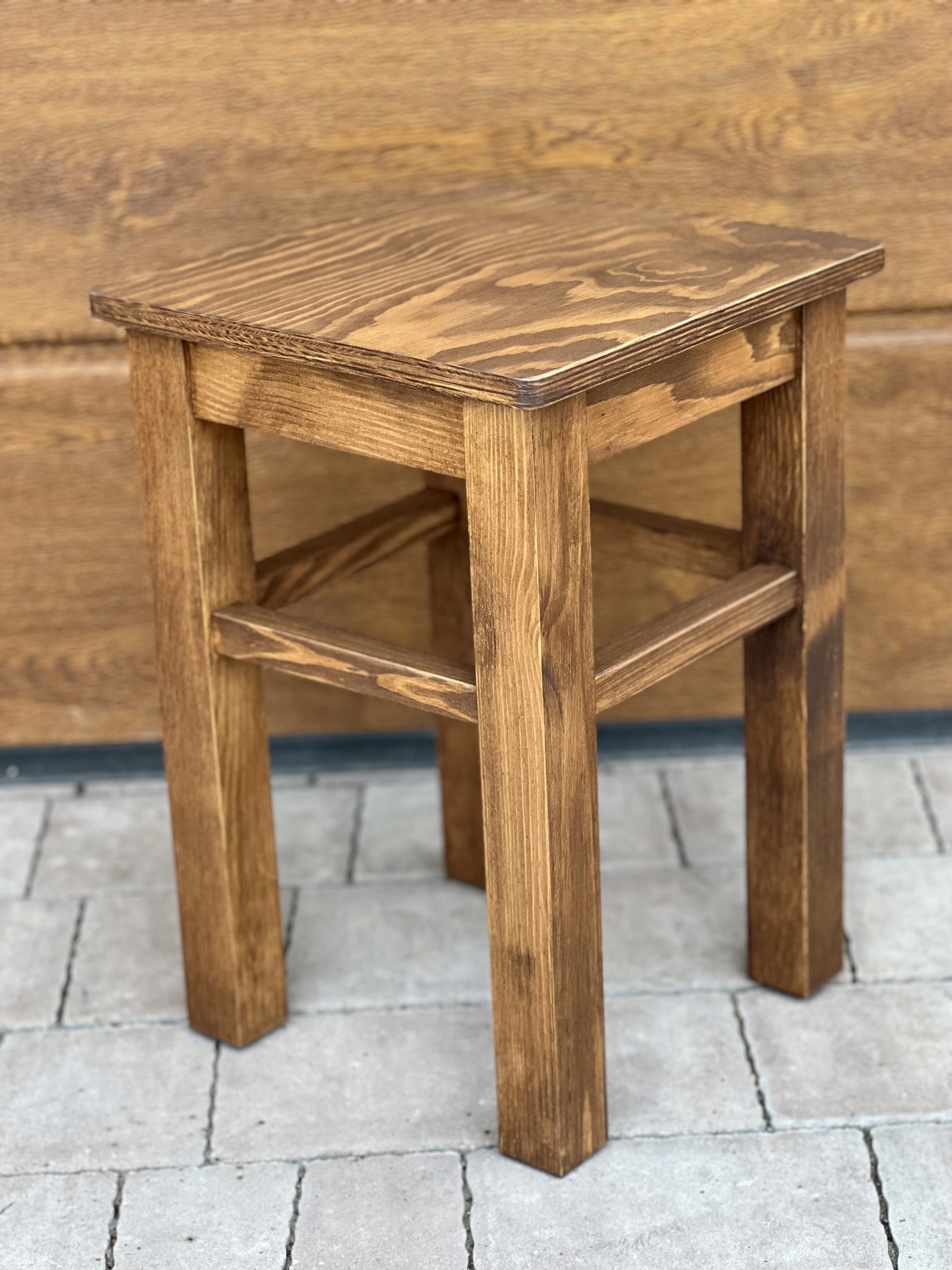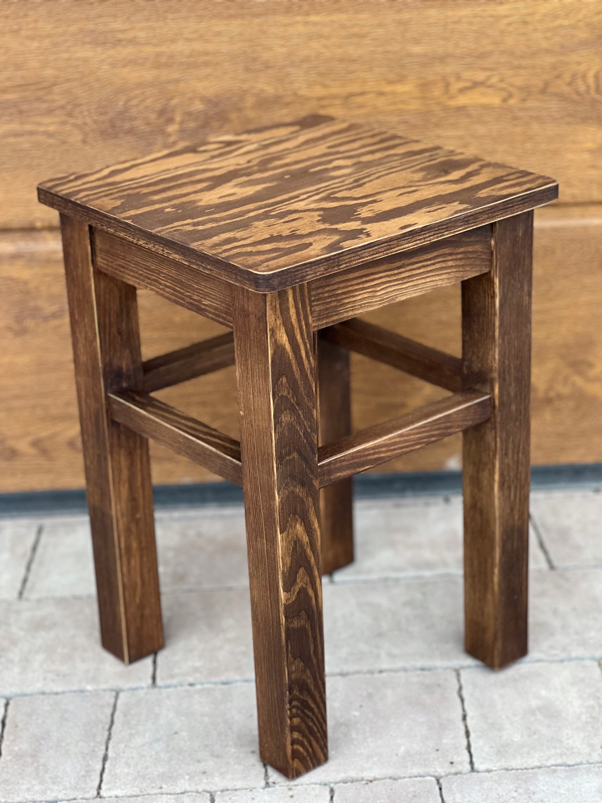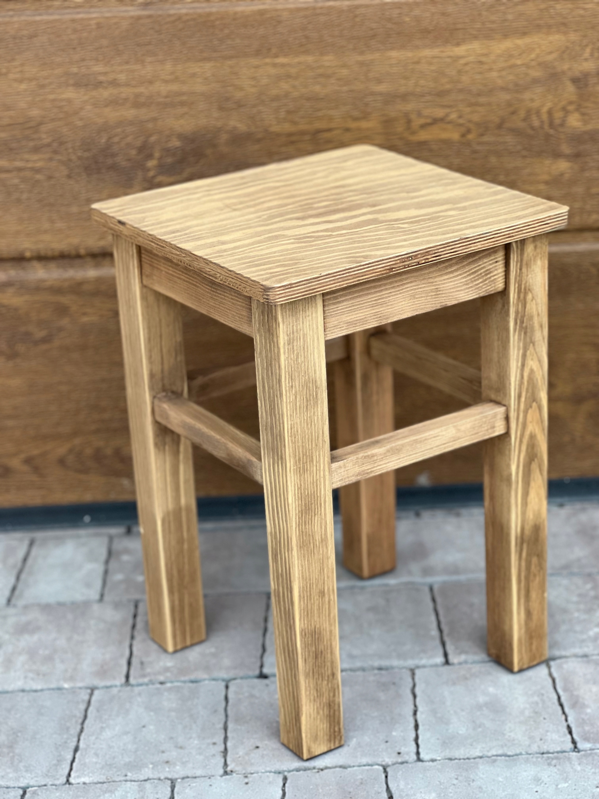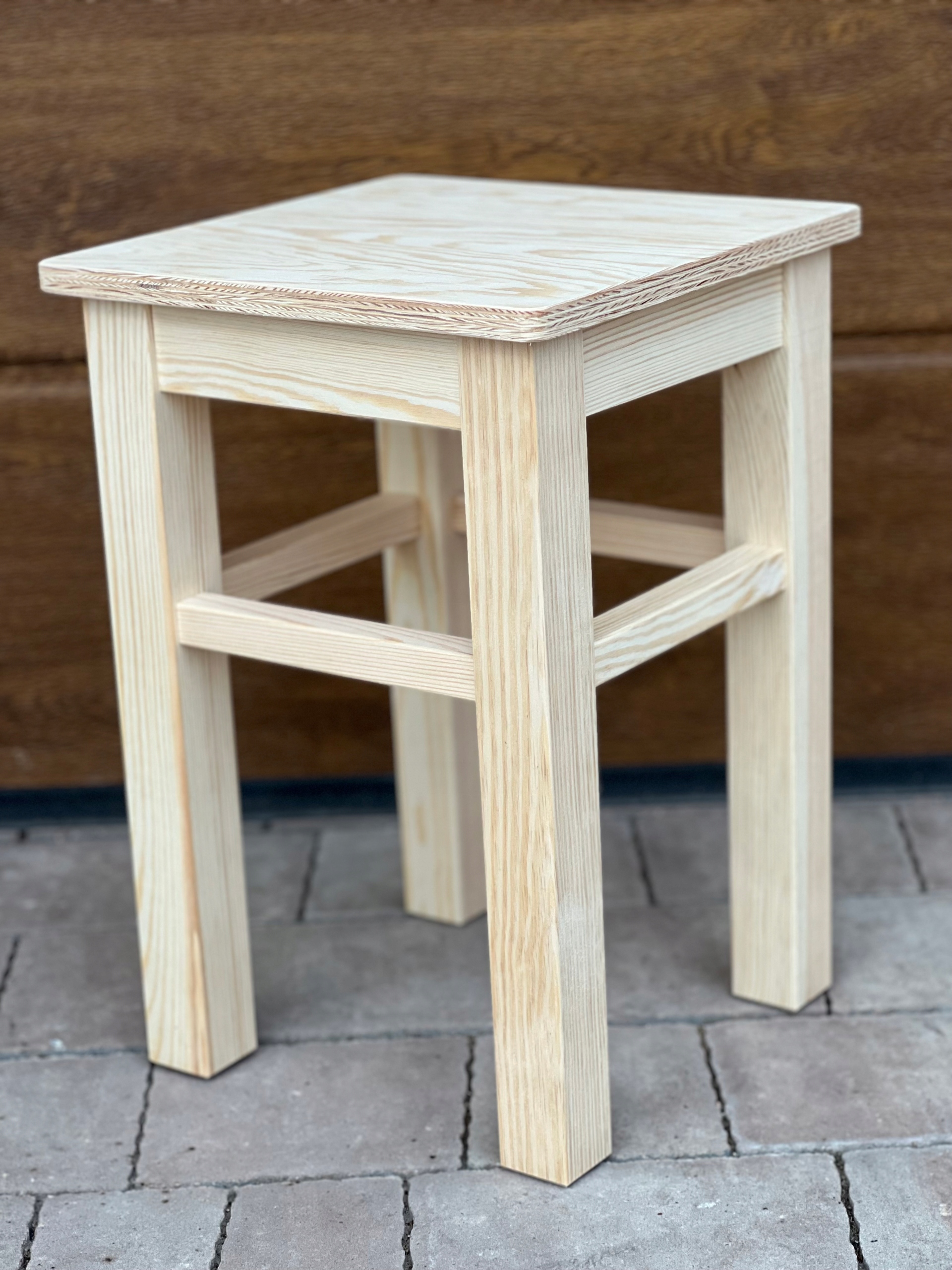 - Крісло-табурет із сосни, оформлене в сільському стилі на товстій конструкції та з товстим верхом – ідеально підходить для кухні