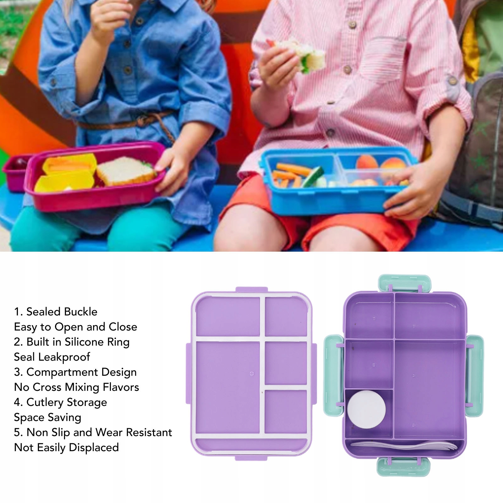 3. Багатофункціональний дизайн: окремі секції, щоб уникнути змішування їжі. Компактний і портативний дизайн ланчбокса дозволяє його легко носити з собою в школу, парк або на іншу прогулянку.