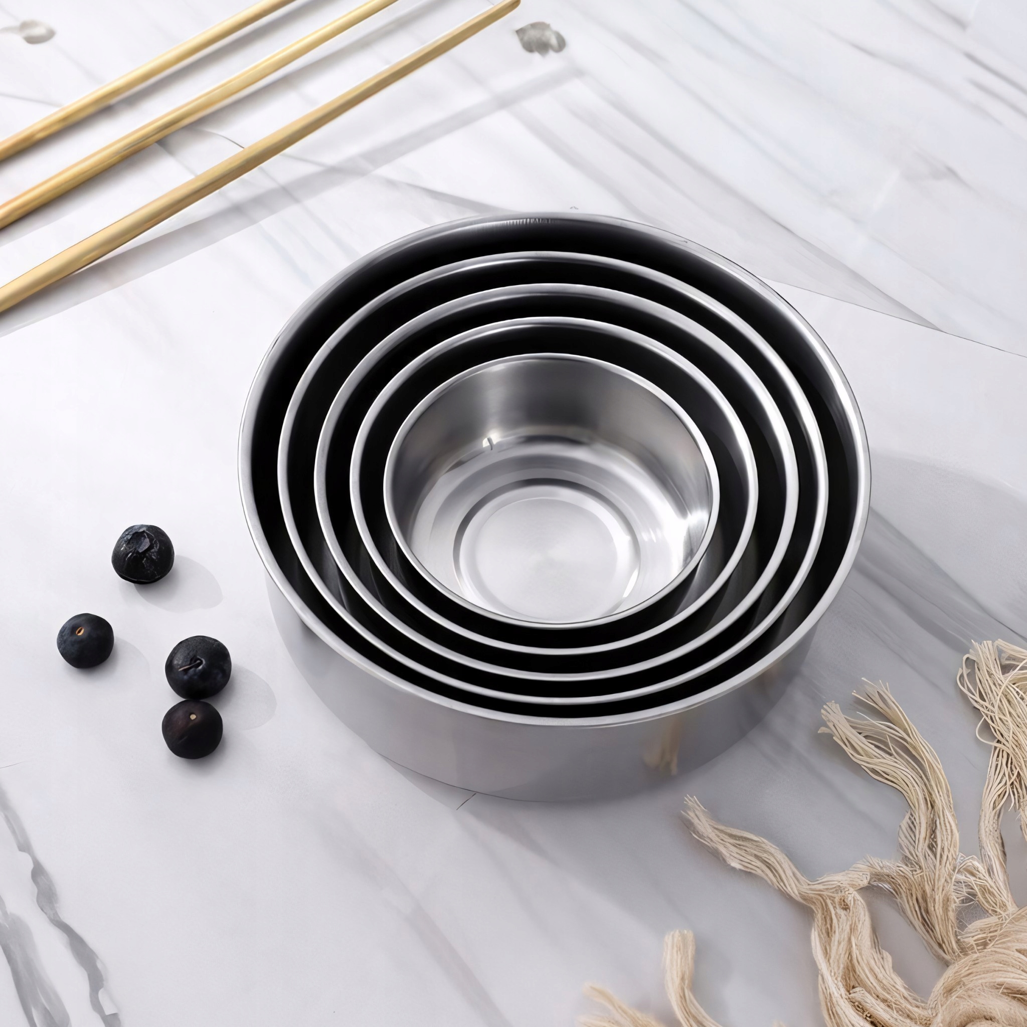 - Розміри чаші: 18x6,7; 15,7х6,2; 14х5,8; 12х5,2; 9,8x4,2 см,
