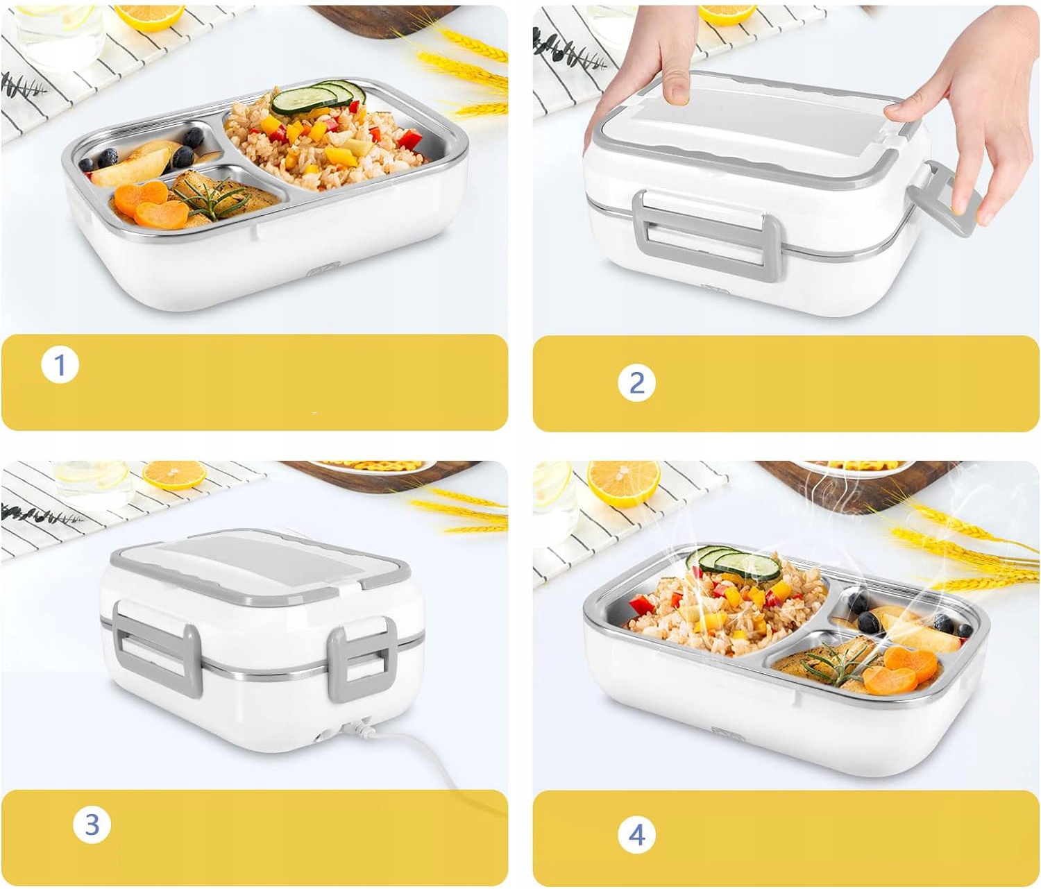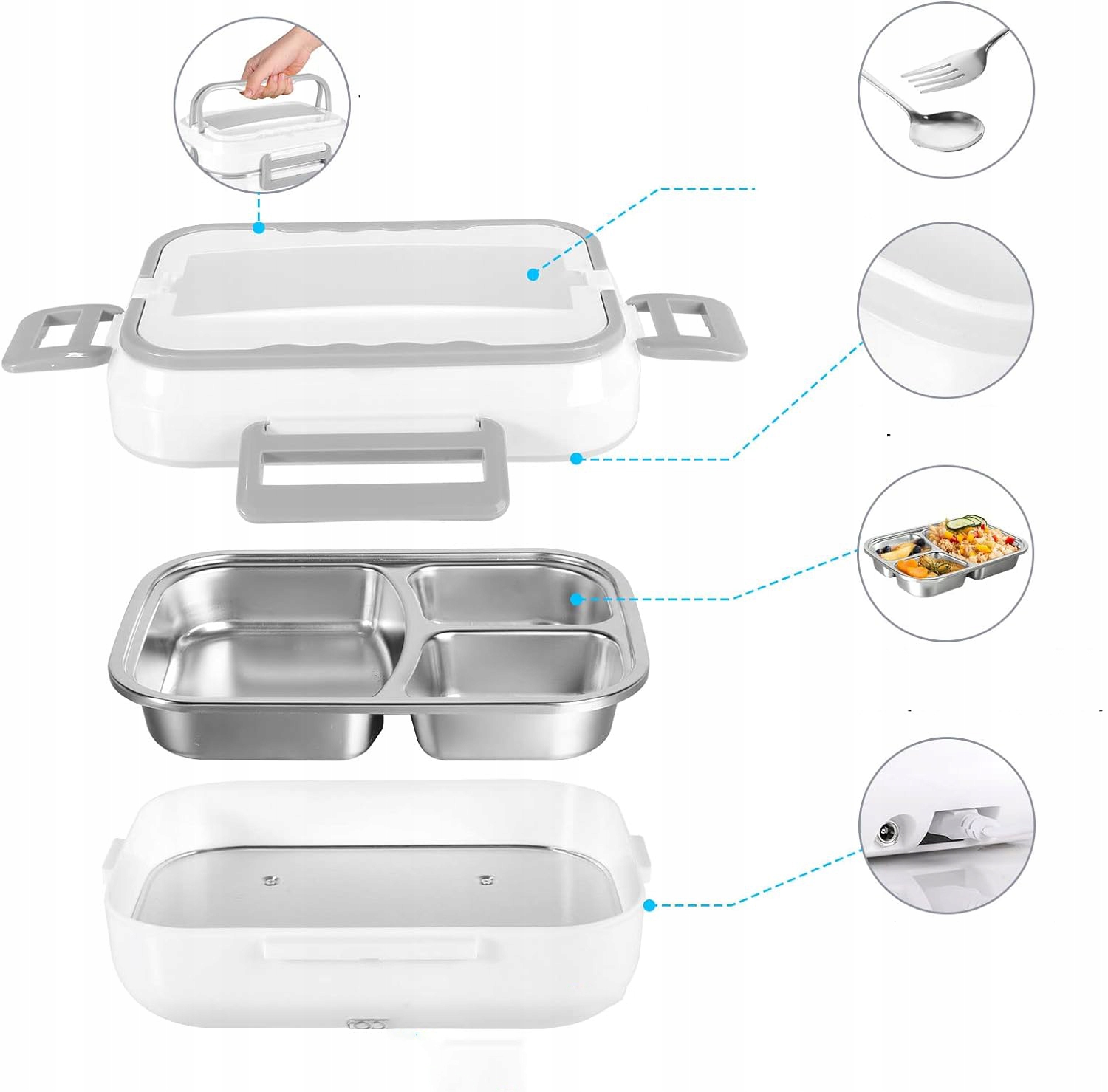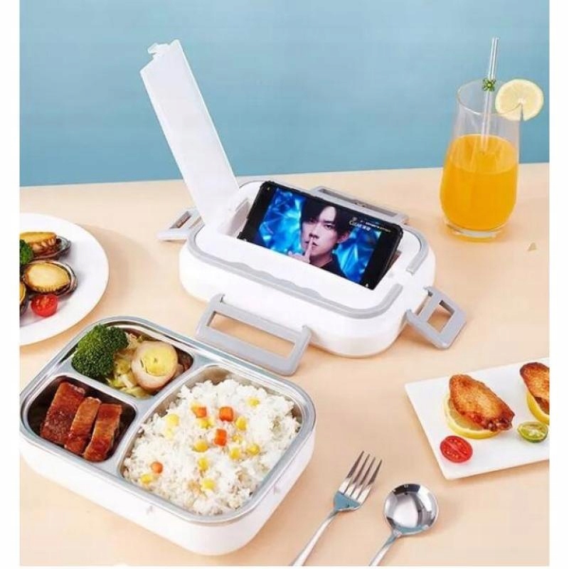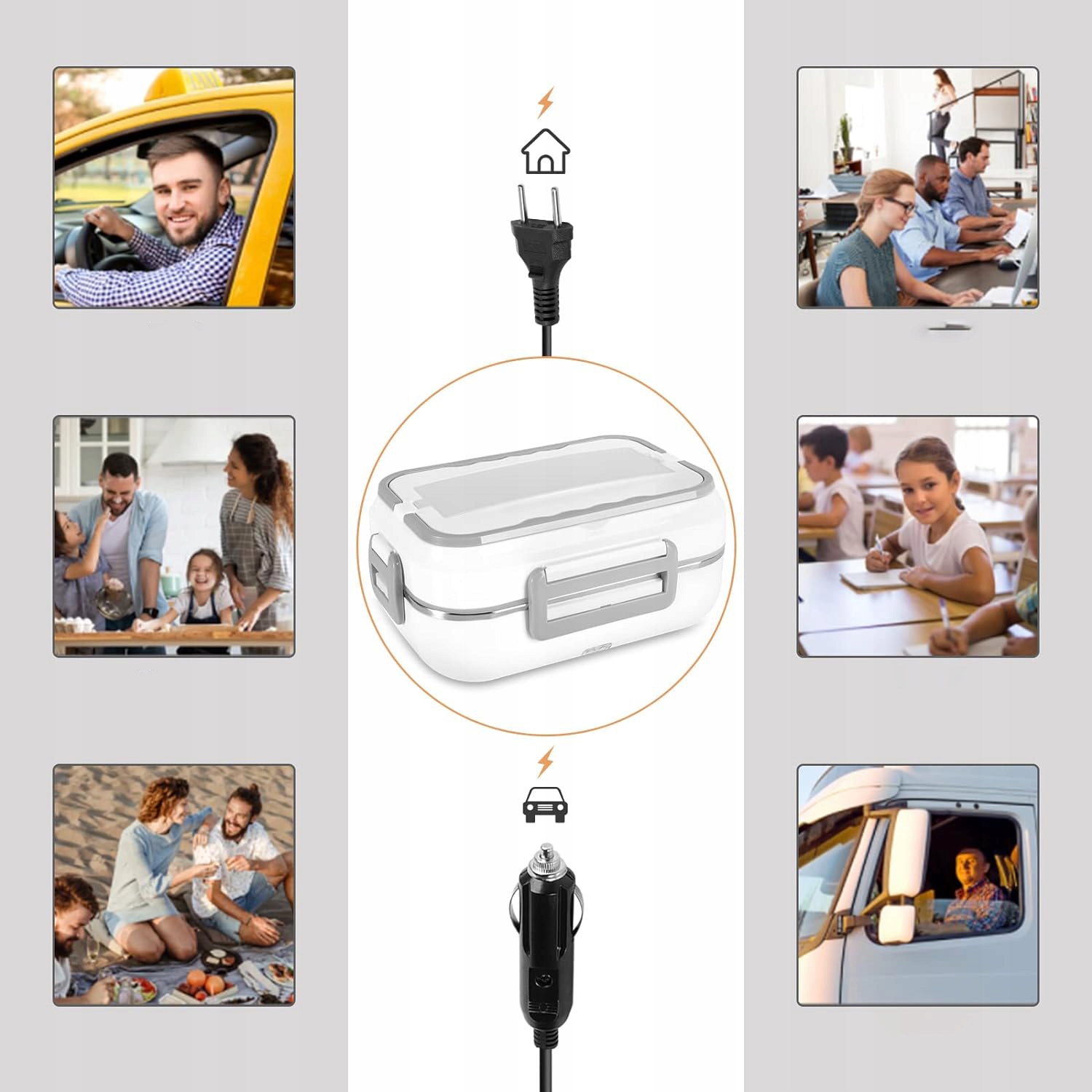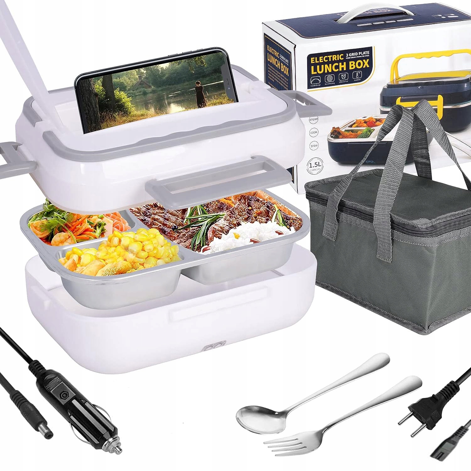 - Електричний ланч-бокс 2 в 1: цей ланч-бокс із підігрівачем їжі має дві вбудовані розетки: одна на 220-240 В для дому чи офісу, а інша на 12 В/24 В для легкових і легких вантажівок. суп. У набір входить 2 види адаптерів, ланч-бокс з підігрівом, утеплена транспортна сумка і виделка/ложка. Верхню кришку також можна використовувати як тримач для телефону.