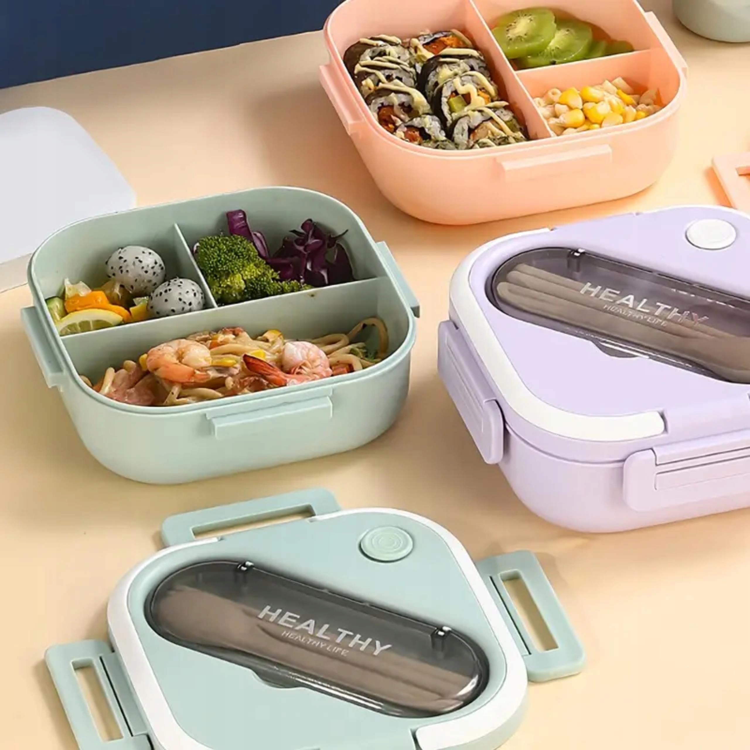 ПРАКТИЧНИЙ ЛАНЧБОКС 1300 мл ІЗ 3 ВІДДІЛЕННЯМИ, ГРУЖКОЮ 330 мл ТА СТОЛОВИМИ ПРИБОРАМИ - ІДЕАЛЬНО ДЛЯ МІКРОХВИЛЬОВОЇ ПЕЧІ ТА ОБІДНОГО ПОСУДУ