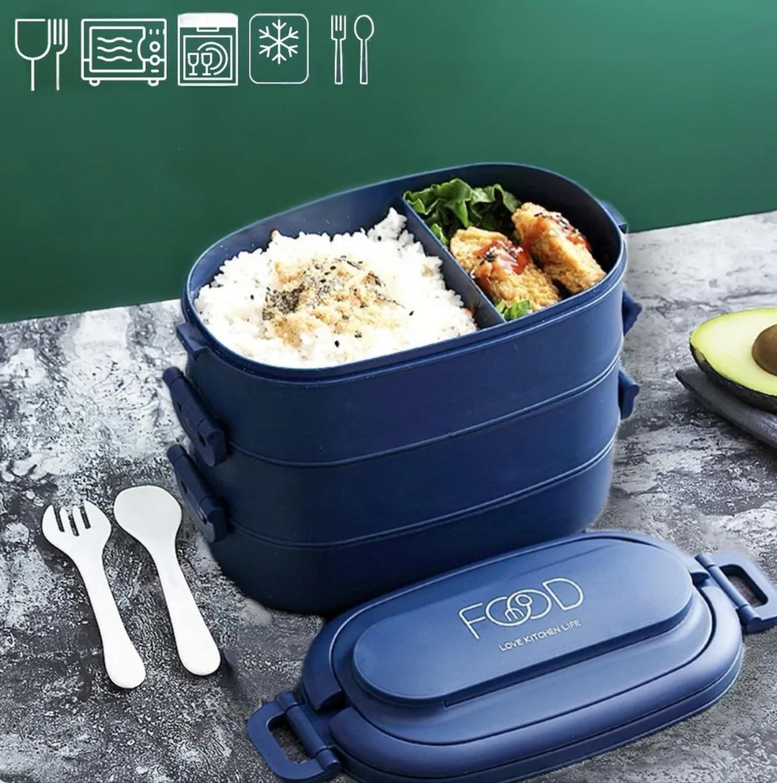 ЛАНЧБОКС 3 РІВНІ ВІДДІЛЕННЯ МІКРОХВИЛЬОВА ПІЧ СТОЛОВІ ПРИБОРИ XXL BOX