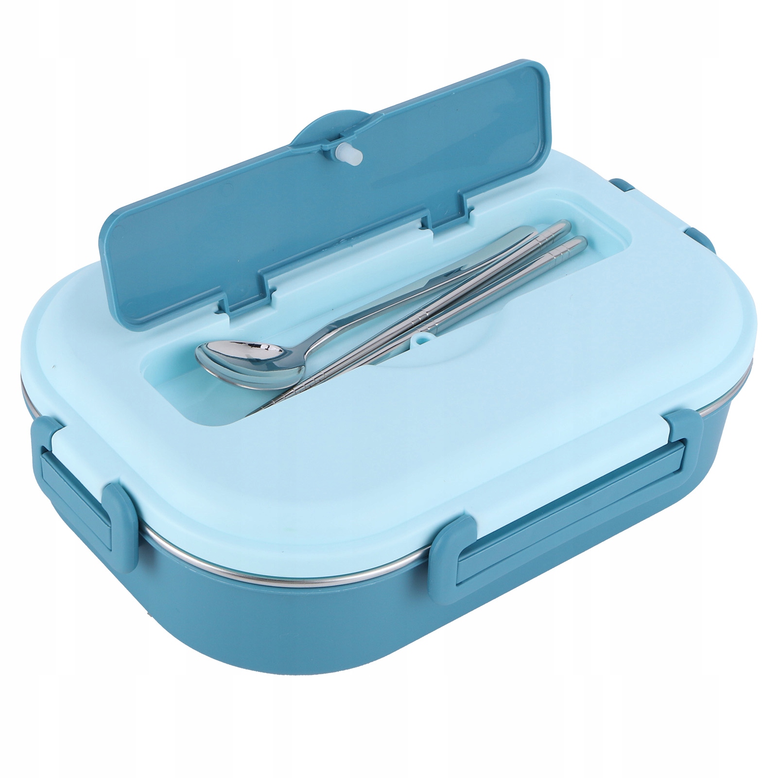 1. Нижній шар наповнений водою для збереження тепла, а кришка містить ложки з нержавіючої сталі та палички для їжі для зручності перенесення.