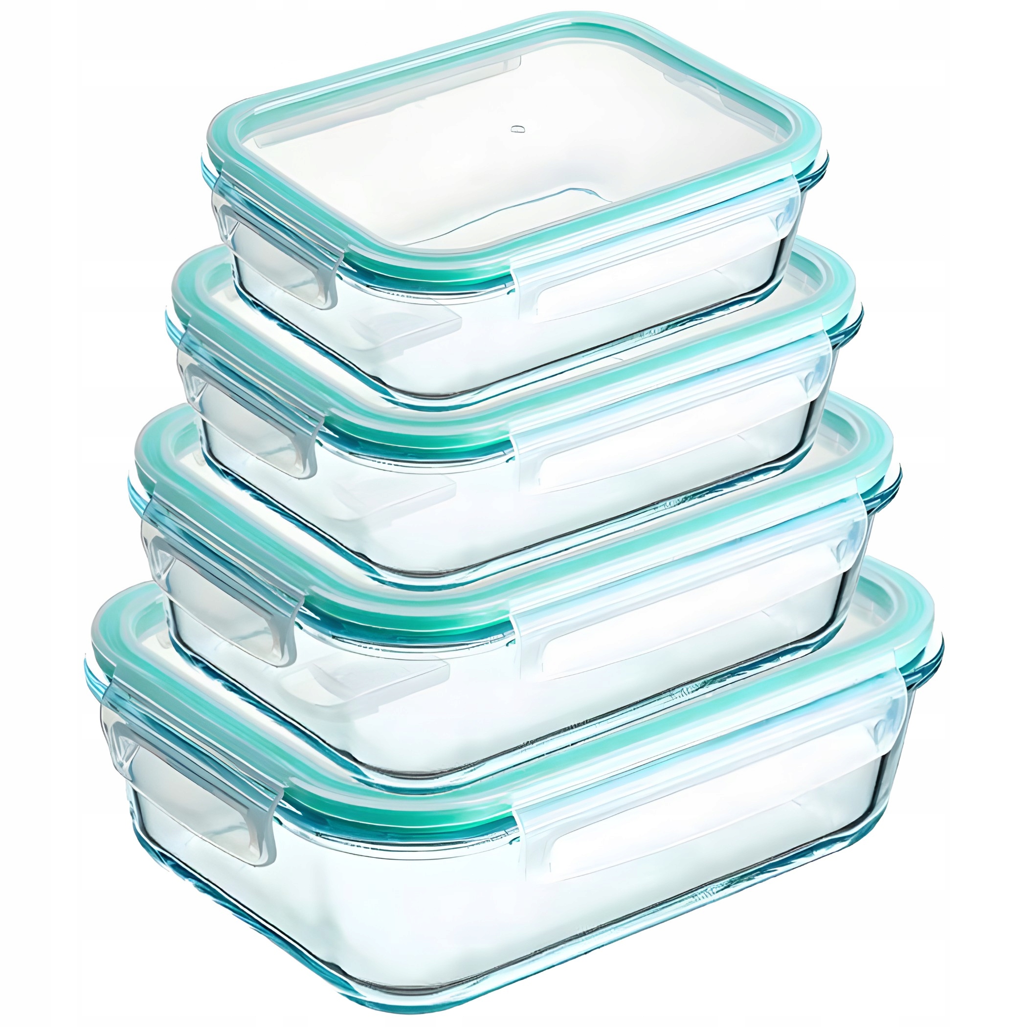 КОНТЕЙНЕР ДЛЯ ХАРЧІВ СКЛЯНИЙ ЛАНЧБОКС ТЕРМОСТІЙКІ КОНТЕЙНЕРИ З КРИШКОЮ 4 ШТ