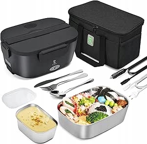 НАСОЛОДЖУЙТЕСЯ ГАРЯЧИМИ СТРАВАМИ ВДОМА: чаша для підігріву STN є універсальною для різноманітних сценаріїв використання, включаючи домашнє використання 220 В, 12 В в автомобілі та 24 В у вантажівці, тому ви можете насолоджуватися гарячими стравами, де б ви не були. Покращена система нагріву: STN Lunch Box оснащений енергозберігаючим нагрівальним елементом потужністю 75 Вт. Завдяки оптимізації розташування нагрівального елемента нагрів відбувається швидко та рівномірно.