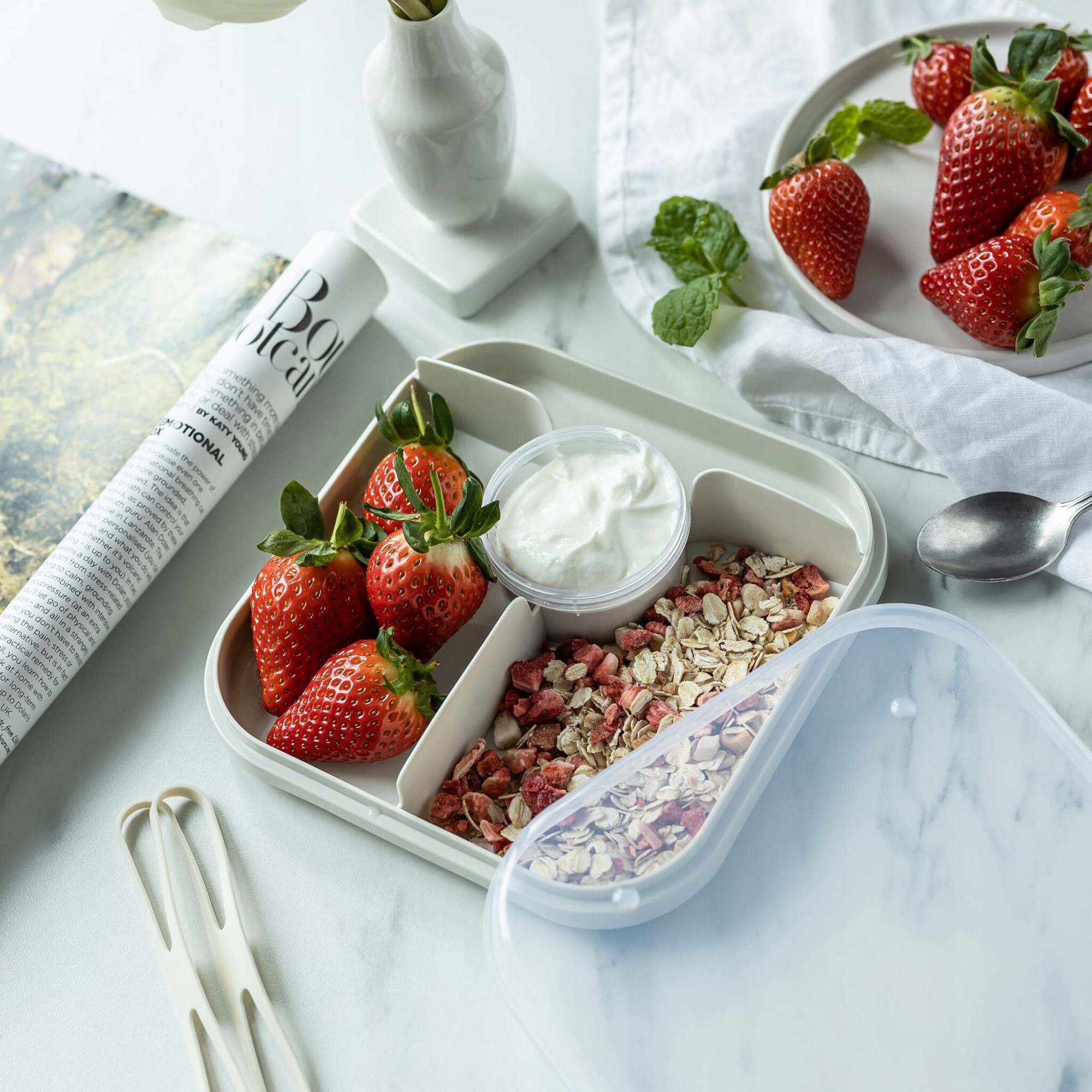Додаткова ємність, що загвинчується, ідеально підходить для оливкової олії, заправки або смажених насіння, які ви можете додати безпосередньо перед вживанням. Ємність оснащена кришкою, яку можна використовувати як пластину, і еластичною стрічкою для запобігання випадкового відкриття. Виготовлений із матеріалів, що не містять бісфенолу А та фталатів, безпечний для здоров’я та доступний у різних кольорах.