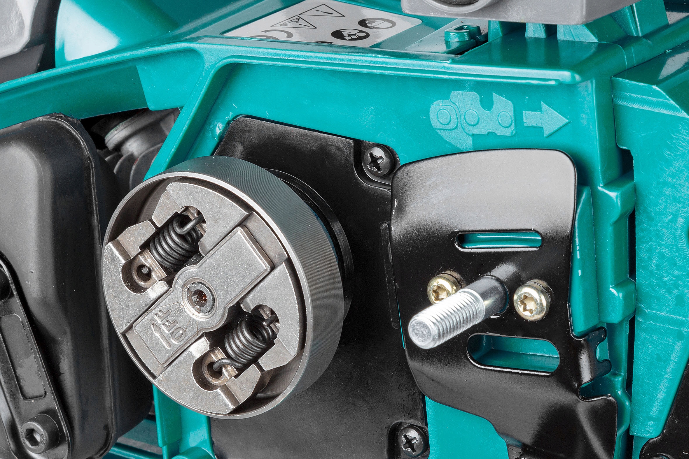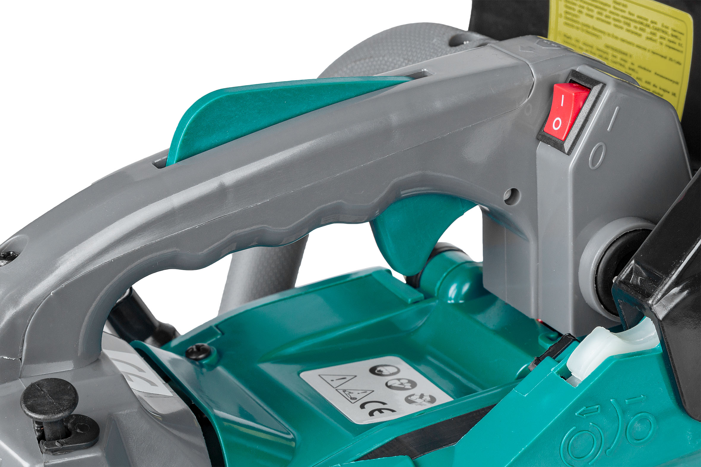 Кожух пили виготовлено з надзвичайно міцного та стійкого матеріалу пошкодження пластику, а робота з пилкою безпечна завдяки щитки та механізм негайної зупинки ланцюга.