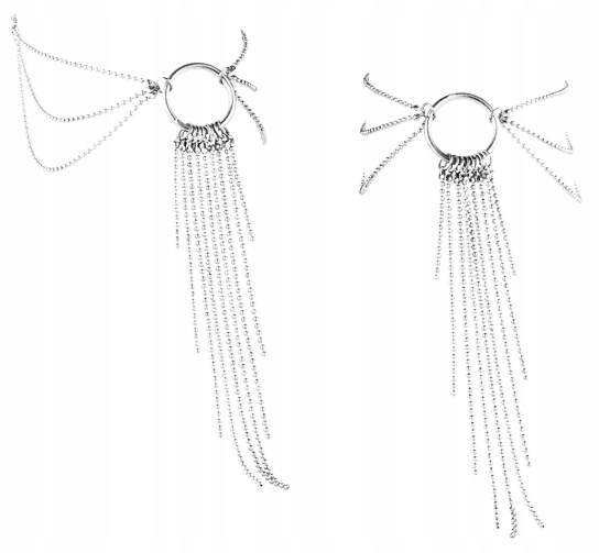 Чарівна. Вони просто чарівні, акуратно обвивають жіночу щиколотку, прикрашаючи її потрійним ланцюжком, а потім звисають на тильній стороні стопи десятком крихітних пензликів, теж з ланцюжків. Вони тримаються на місці завдяки петельці для пальців, яка запобігає ковзанню прикраси та завжди виглядає красиво.