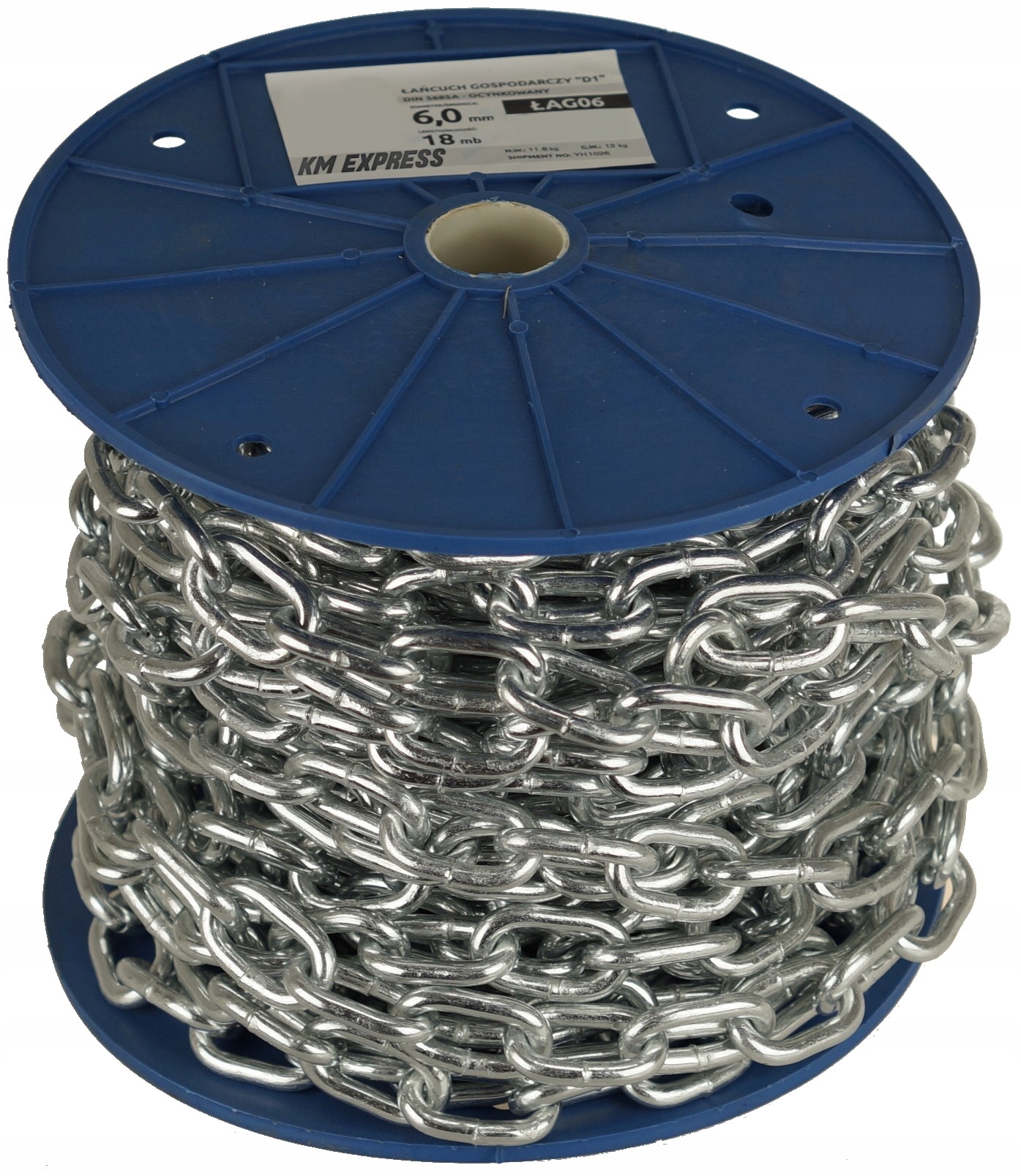 ŁAŃCUCH GOSPODARCZY D1 6MM ROLKA 18M OCYNKOWANY 1150KG