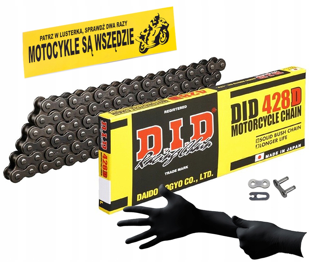 Ланцюги D.I.D – це продукція найвищої якості. Виробник - японська компанія «DAIDO KOGYO» працює на ринку більше 70 років, спеціалізується на виробництві приводних ланцюгів і ланцюгів ГРМ. Користувачі двоколісних по всьому світу давно переконалися в їх незаперечних перевагах і успішно використовують їх як у найважчих дорожніх мотоциклах, так і в високопродуктивних спортивних, кросових і квадроциклах. Широка пропозиція відрізняється за довговічністю, застосуванням і ціною. Це дозволяє вибрати продукт, який найкраще відповідає вимогам користувача.