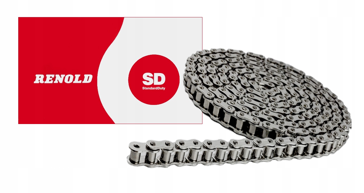 Роликовий ланцюг 10B-1 5/8 ДЮЙМОВ RENOLD, конструкція подібна до втулкового ланцюга, але крім пластин зовнішніх і внутрішніх втулок і штифтів, він також має ролики, встановлені на втулках. Використання роликів у конструкції покращує стійкість ланцюга до зношування та підвищує ефективність трансмісії.