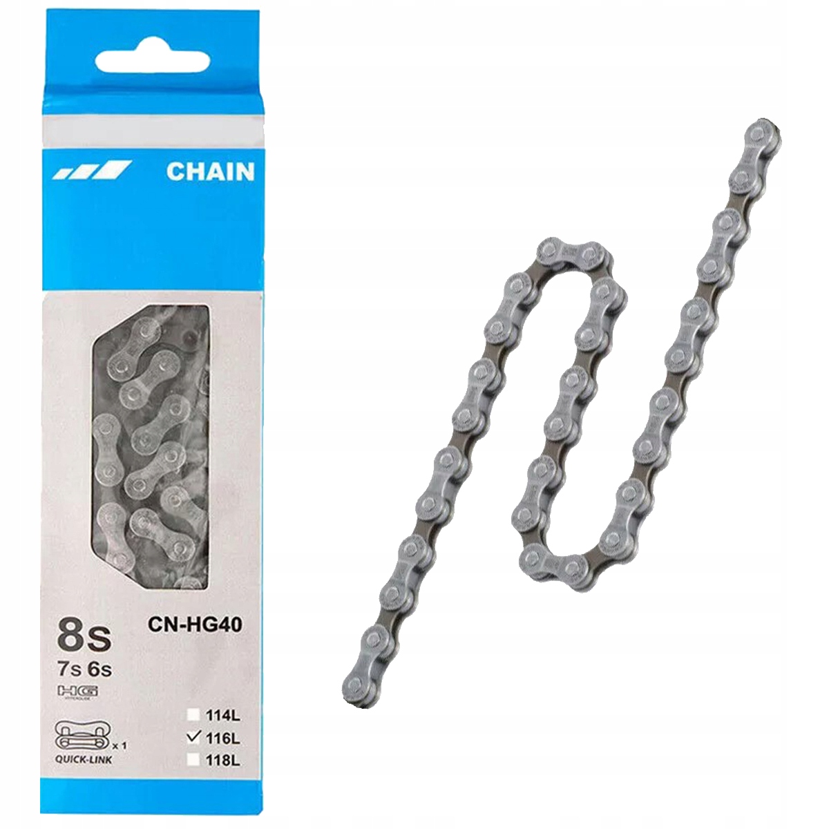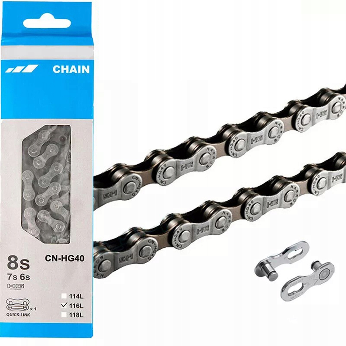 ✅shimano CN-HG40-це ланцюжок 6/7/8 для MTB та Trekking/Road. Ланцюг Shimano CN-HG40 також підходить для старших 6-ступінчастого HG (18/21/24 Derailleur). Посилання
