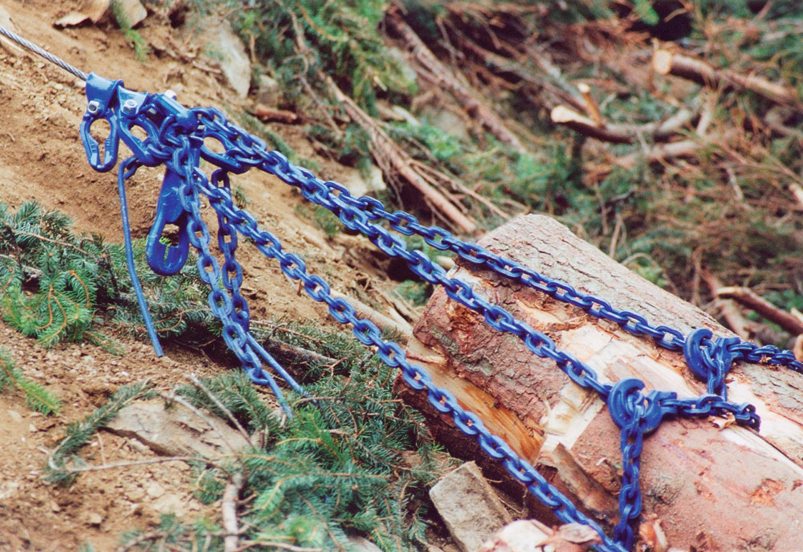 ЗАСТОСУВАННЯ: Адаптований ланцюг для трелювання лісу як обладнання для вивезення деревини та інших лісогосподарських і сільськогосподарських робіт. Форма ланцюга «D» забезпечує надійне зачеплення та правильне затискання колоди ланцюгом без можливості її самостійного ковзання по колоді.