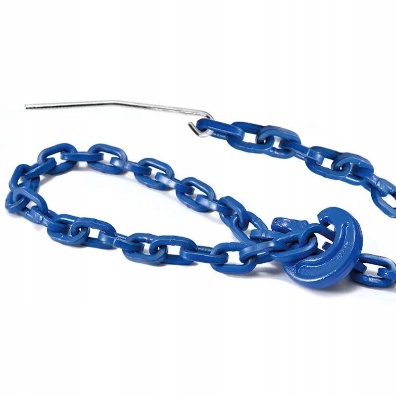 Повний набір включає квадратний ланцюг, пропускний гак і шплінт, що забезпечує готовність до негайного використання. Квадратний переріз ланок запобігає зісковзуванню ланцюга з деревини, а гак забезпечує надійне і стабільне кріплення. Шплінт дозволяє швидко протягнути ланцюг під колоду.