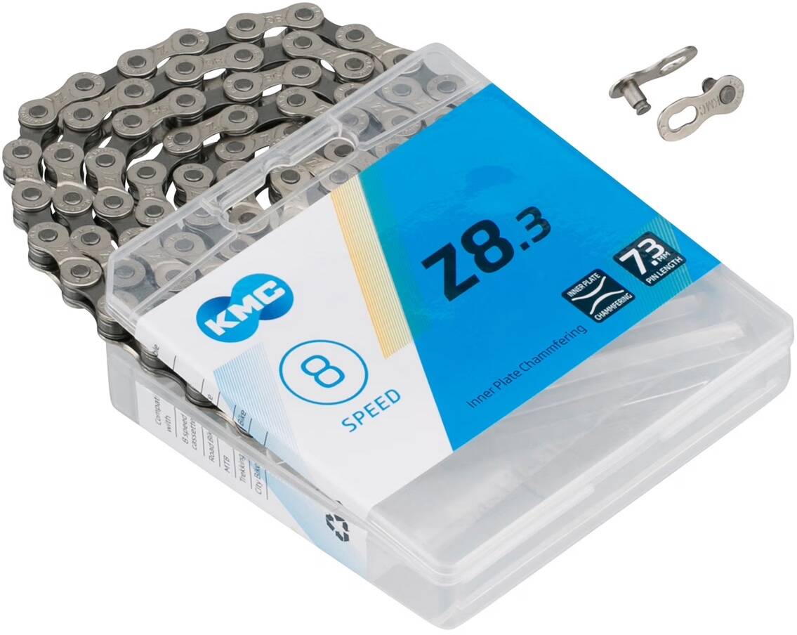 If Ви шукаєте недорогий, але хороший ланцюг, серія KMC Z8 - ідеальний вибір. Він частково нікельований, ненаправлений і простий в обслуговуванні завдяки багаторазовому затиску MissingLink-7/8R. Конструкція Z-Bridge для збільшення швидкості, плавності та точності перемикання передач.