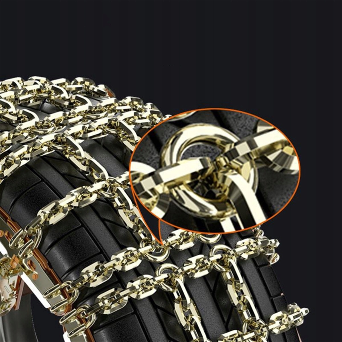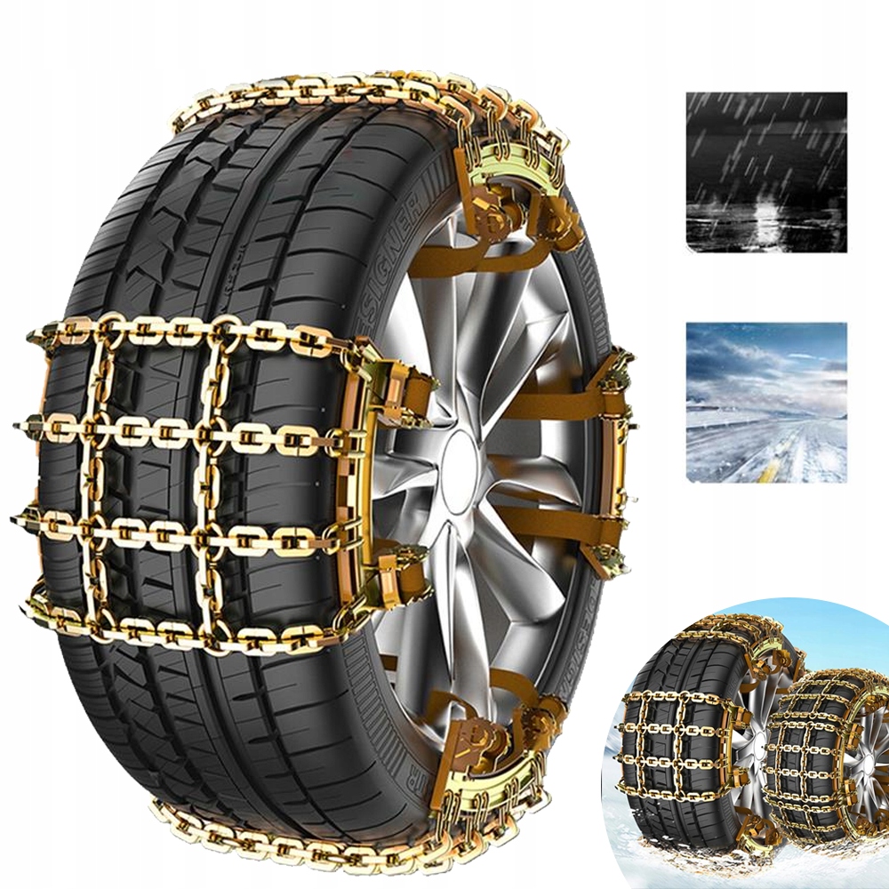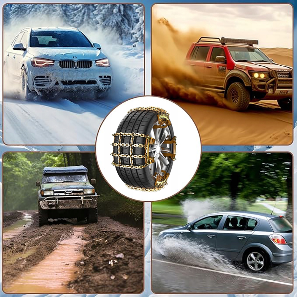 Ланцюги проти ковзання підходять для всіх шин легкових автомобілів, позашляховиків і легких вантажівок. Ланцюги проти ковзання для автомобільних шин мають подвійну нитку та сендвіч-структуру, тож ви можете безпечно їздити за поганих погодних умов (таких як сніг, бруд або лід).