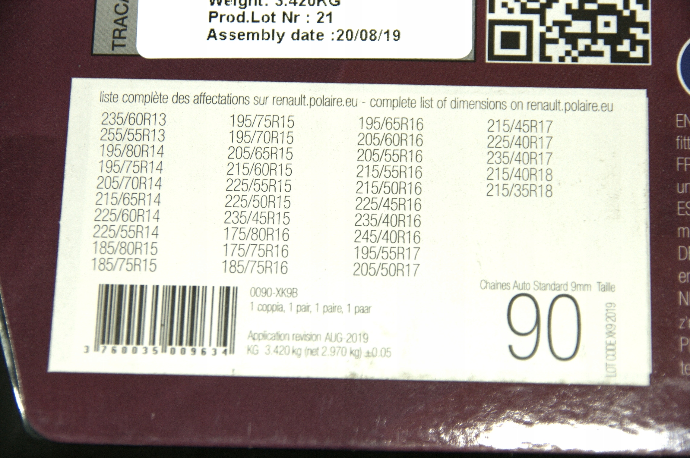 Ланцюги проти снігу POLAIRE XK9 90 ОРИГІНАЛ