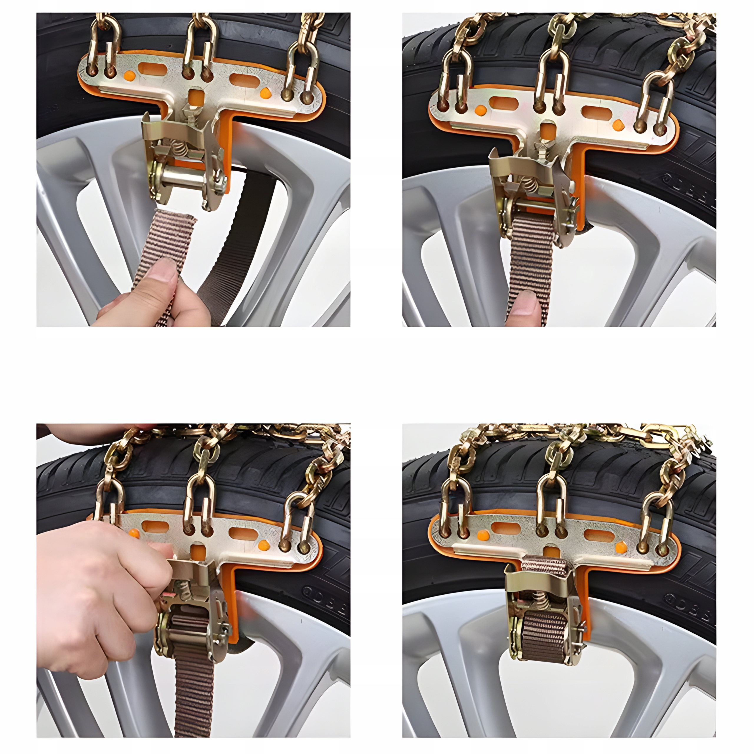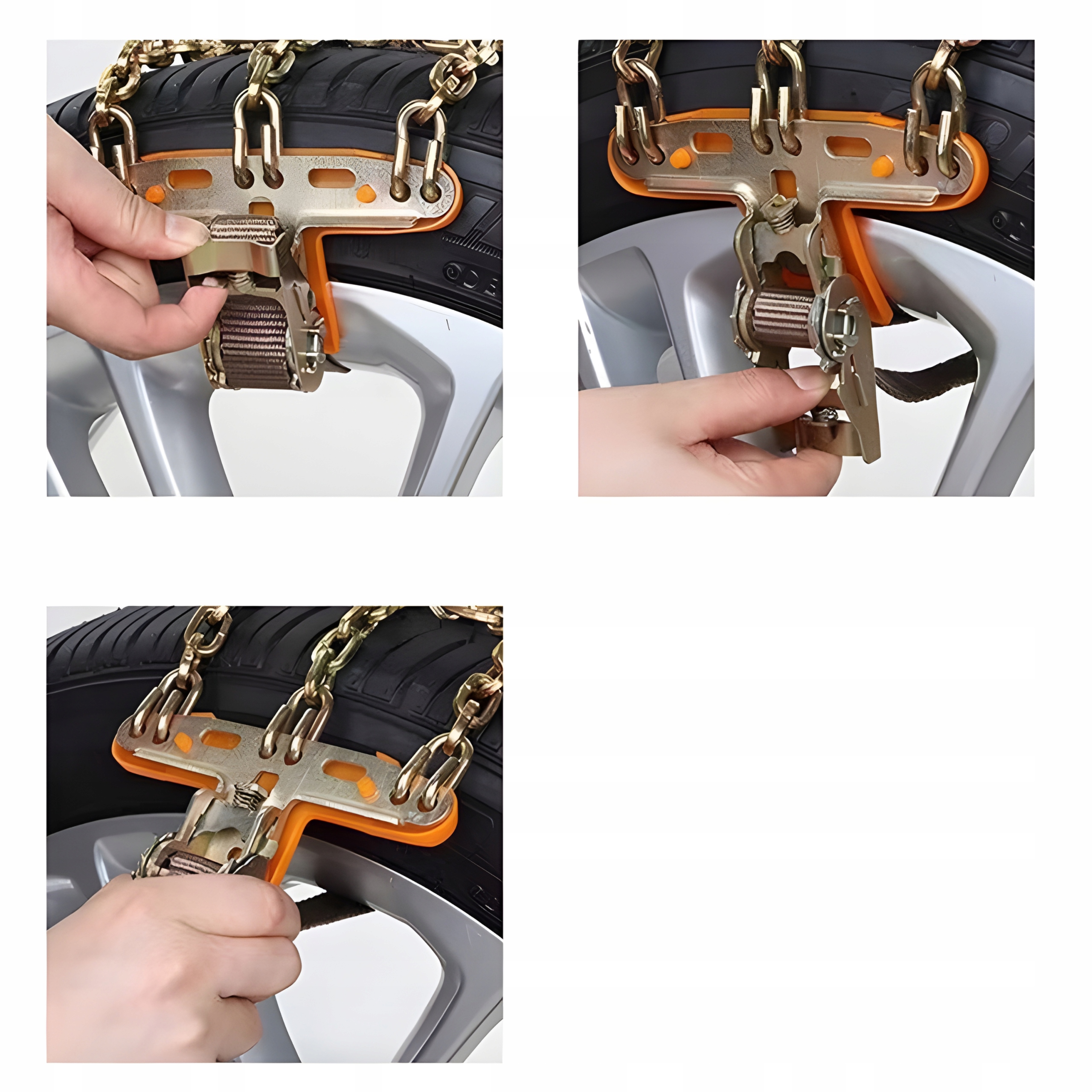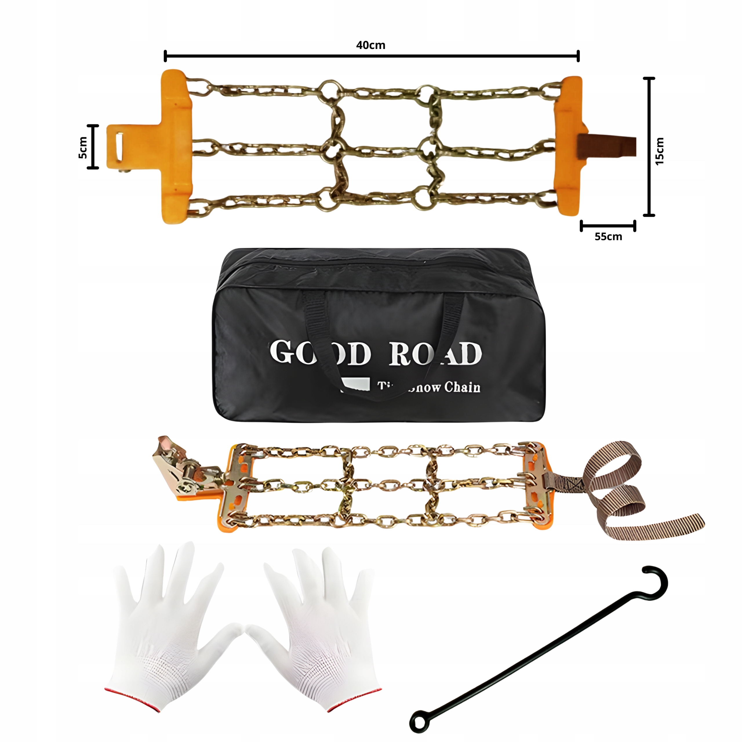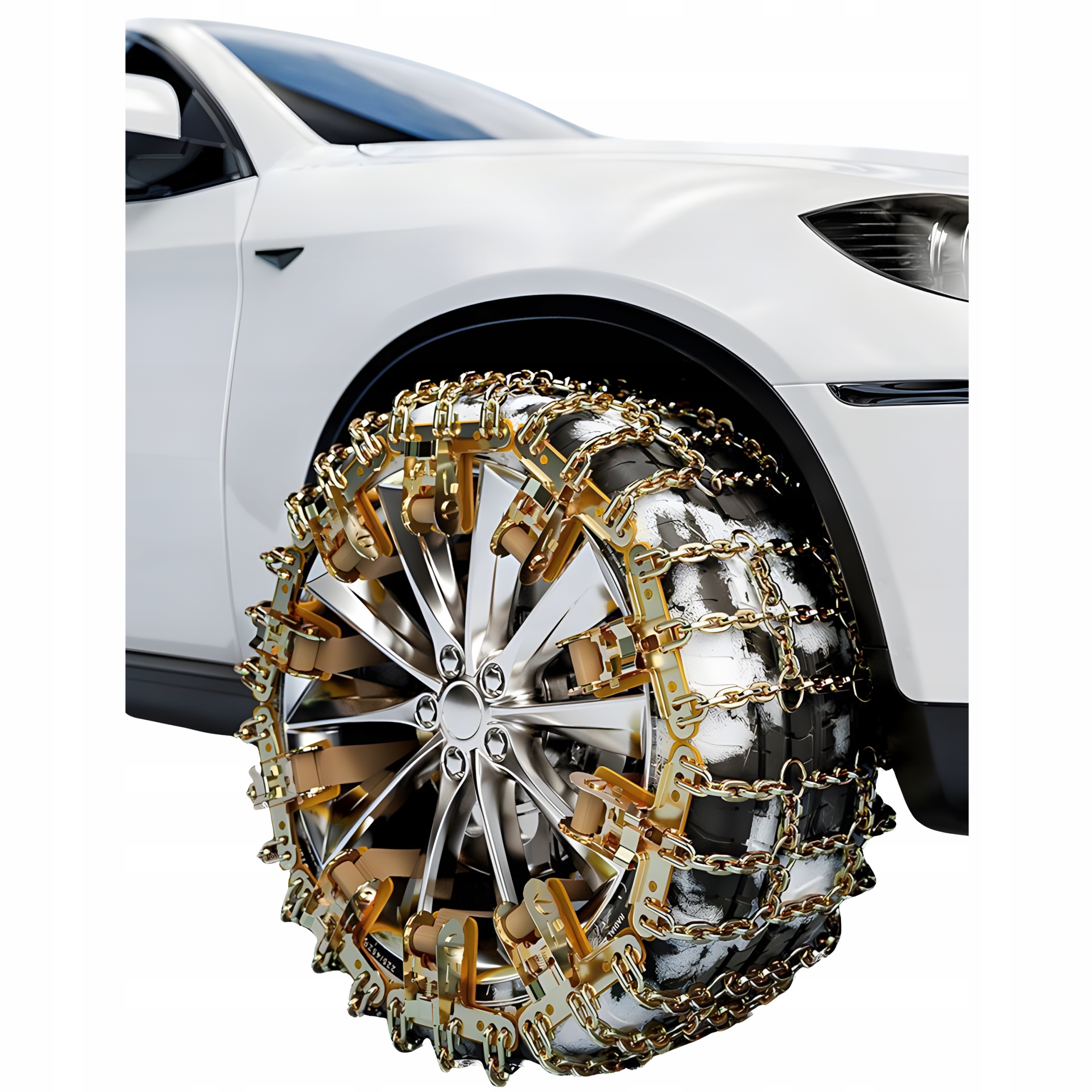 Ці ланцюги проти ковзання є сучасним рішенням, яке забезпечує максимальне зчеплення на льоду та снігу завдяки міцній марганцевій сталі та швидкому встановленню без використання домкрата.