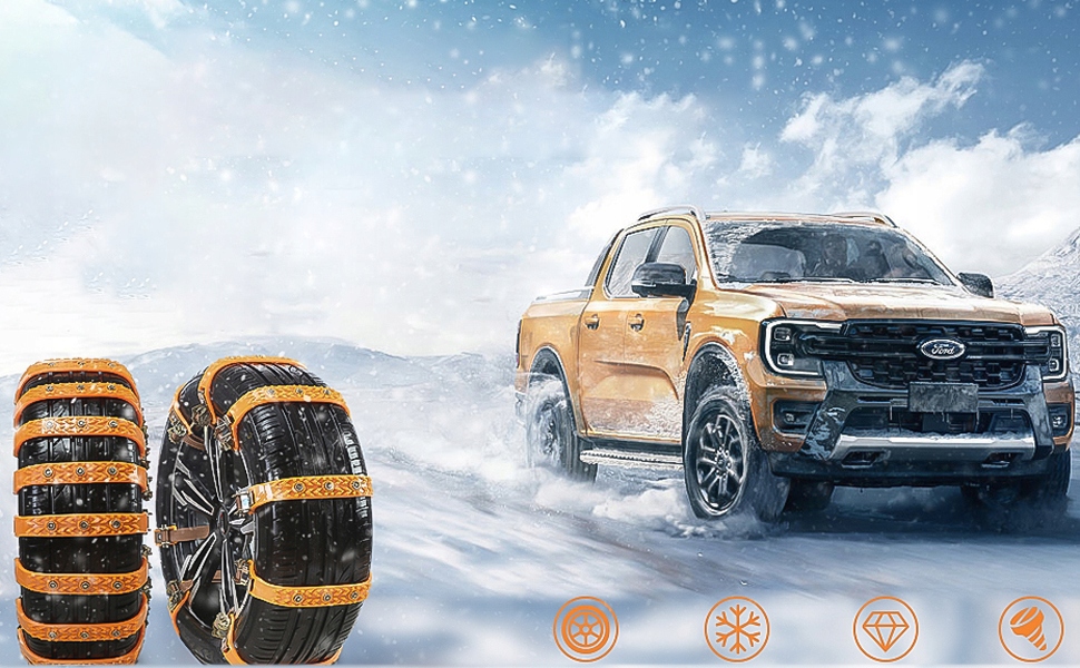 - Оснащені регульованим шнурком і подвійними затискачами , підходить для всіх моделей із шириною шин 165-265 мм/6,5-10,4". Підходить для більшості легкових автомобілів, позашляховиків і вантажівок. Витримує температуру до -50°C.
