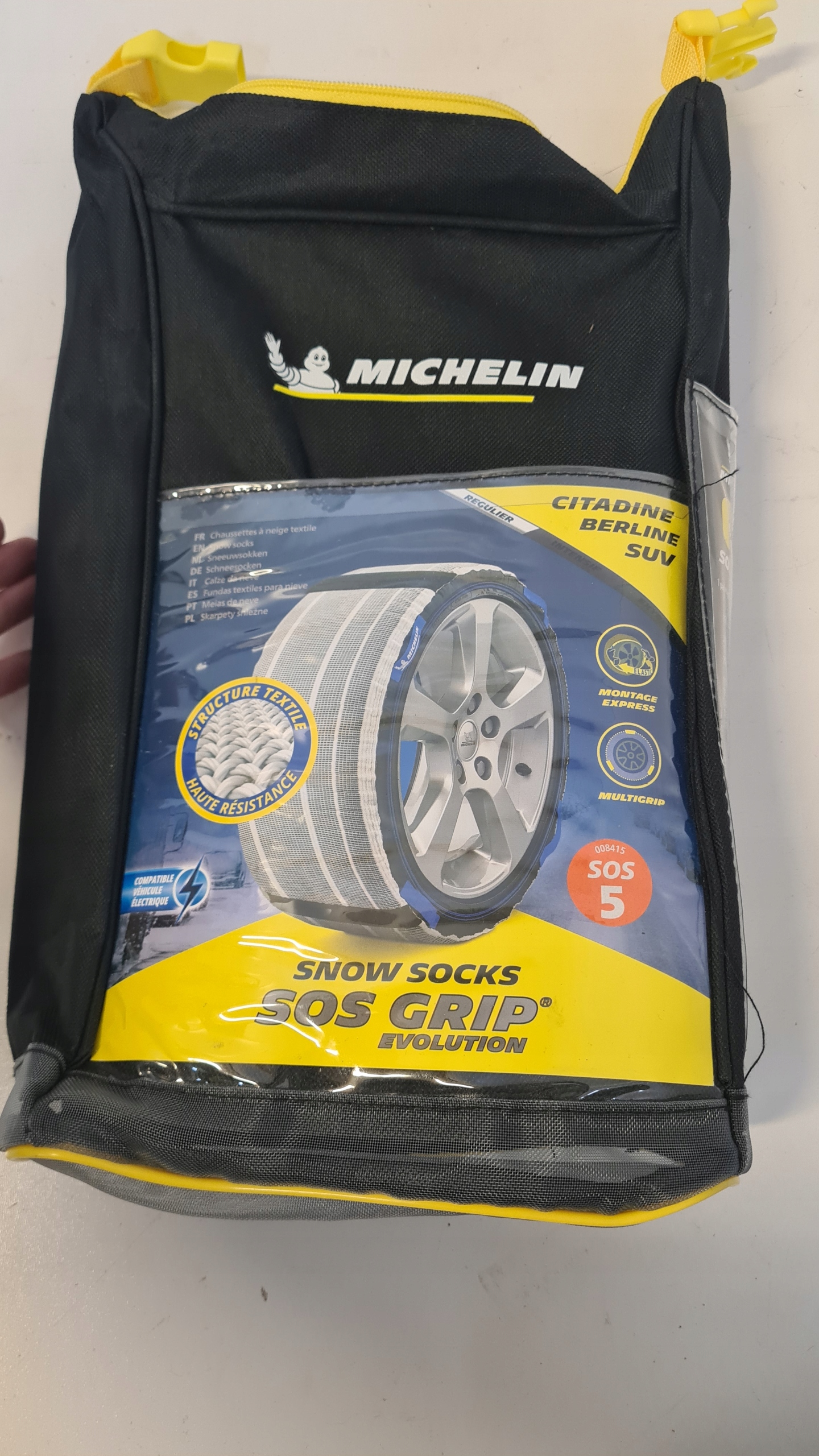 Текстильні ланцюги Michelin SOS Grip Evolution SOS 5 - це сучасне рішення, яке забезпечує додаткове зчеплення на засніжених та крижаних поверхнях. Виготовлені з міцних і стійких матеріалів, вони легко встановлюються та ідеально підходять для використання в складних зимових умовах. Завдяки своєму інноваційному дизайну ці ланцюги забезпечують оптимальне зчеплення та стабільність на дорозі, гарантуючи безпечне водіння навіть в екстремальних умовах.