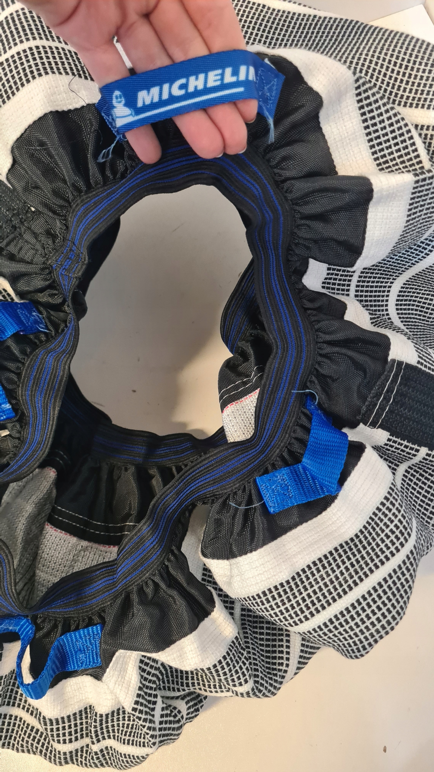 Текстильні ланцюжки Michelin дуже легко встановити. Просто покладіть їх на верхню частину шини, а потім перемістіть автомобіль на кілька сантиметрів, щоб встановити ланцюги по всій поверхні. Спеціальні натягувачі гарантують, що ланцюги залишаються на місці під час їзди.