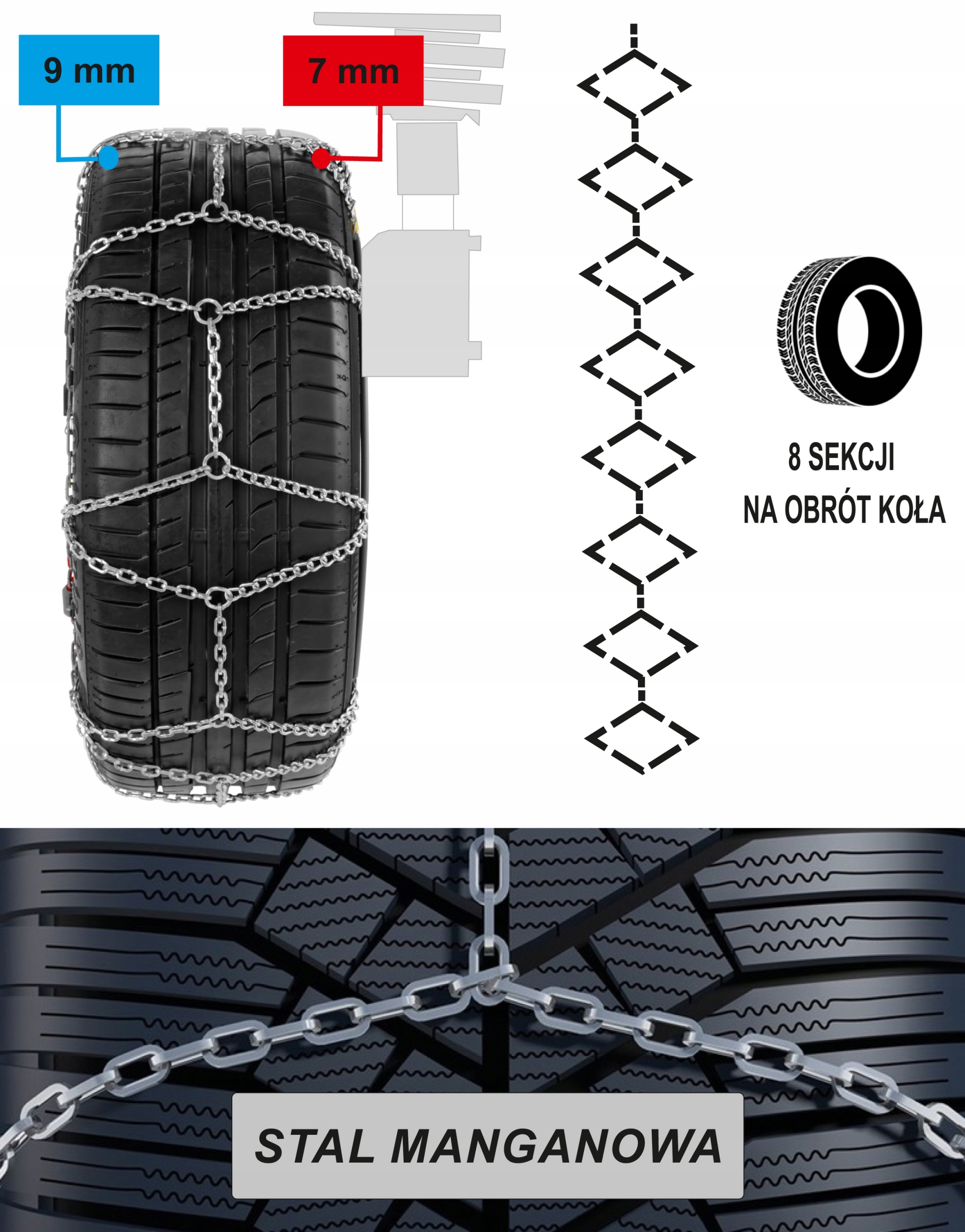 - Дволанкові ланцюги протиковзання, 7/9 мм