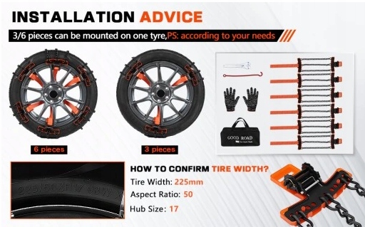 - Безпечне водіння взимку: враховуючи безпеку подорожей на відкритому повітрі взимку, його можна використовувати на засніжених, крижаних, брудних або піщаних дорогах у разі несподіваного снігопаду чи надзвичайних ситуацій, ефективний захист від ковзання, безпечне водіння та безпечне повернення додому