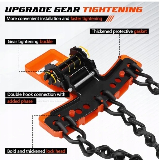 Геніальна конструкція торсійного ланцюга, сильніший крутний момент і більш стабільне зчеплення. Ланцюг щільно прилягає до шин і забезпечує стабільну їзду по снігу та льоду.