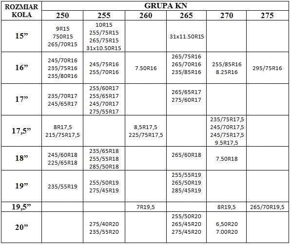 Якщо ви не знайшли свій розмір коліс, скористайтеся наведеною нижче таблицею: