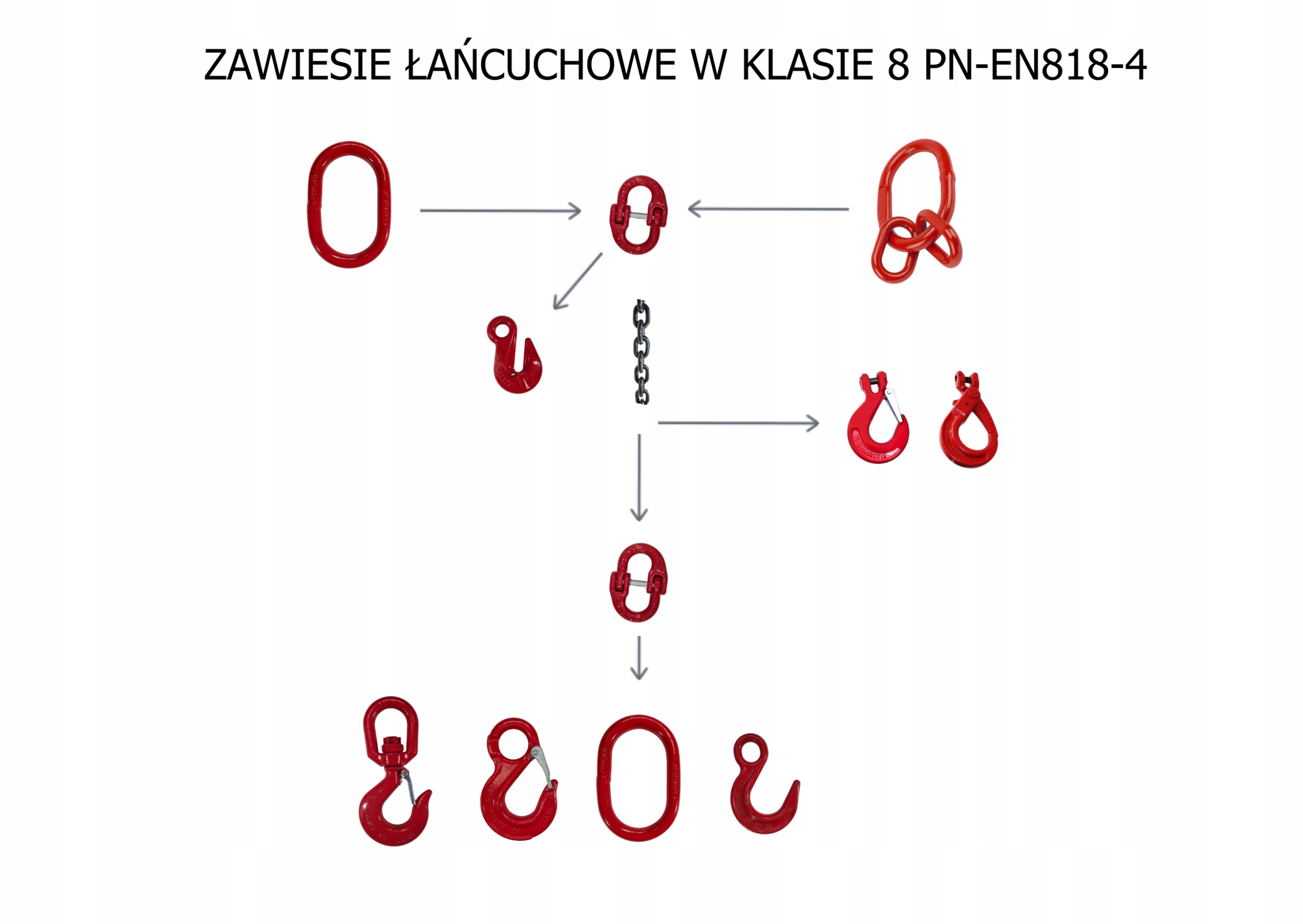 - 1,12 тонни TONY : такі робочі значення типні для 8 (G8). На практиці вантажопідйомність підвіски залежить від діаметра ланцюга та кута підйому (якщо ми використовуємо інші TOT). Ось приклади допустимих навантажень для різних діаметрів ланцюга:
